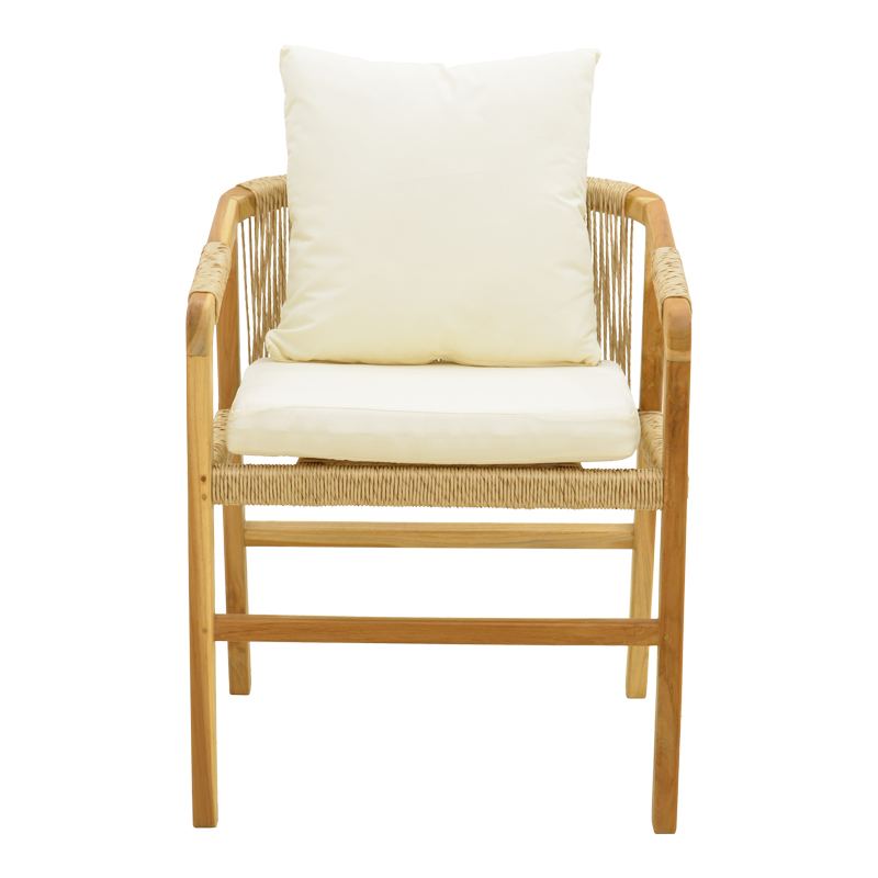 Αναβαθμίστε τον χώρο σας με την εκλεπτυσμένη πολυθρόνα Cuerda που συνδυάζει άψογα την αντοχή του ξύλου teak με την απαλή αίσθηση του πλεγμένου σχοινιού. Αυτή η πολυθρόνα είναι σχεδιασμένη για να προσφέρει τόσο στυλ όσο και απαράμιλλη άνεση, καθιστώντας την την ιδανική προσθήκη σε κάθε σαλόνι, βεράντα ή χώρο χαλάρωσης.