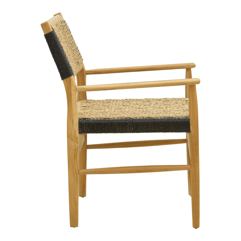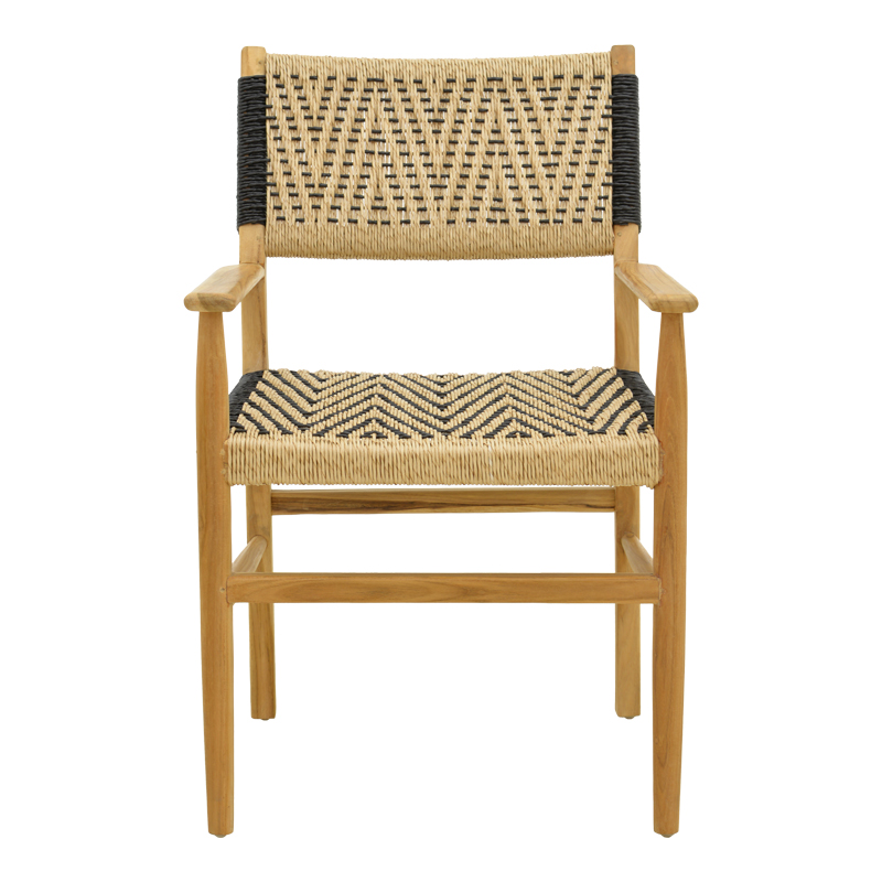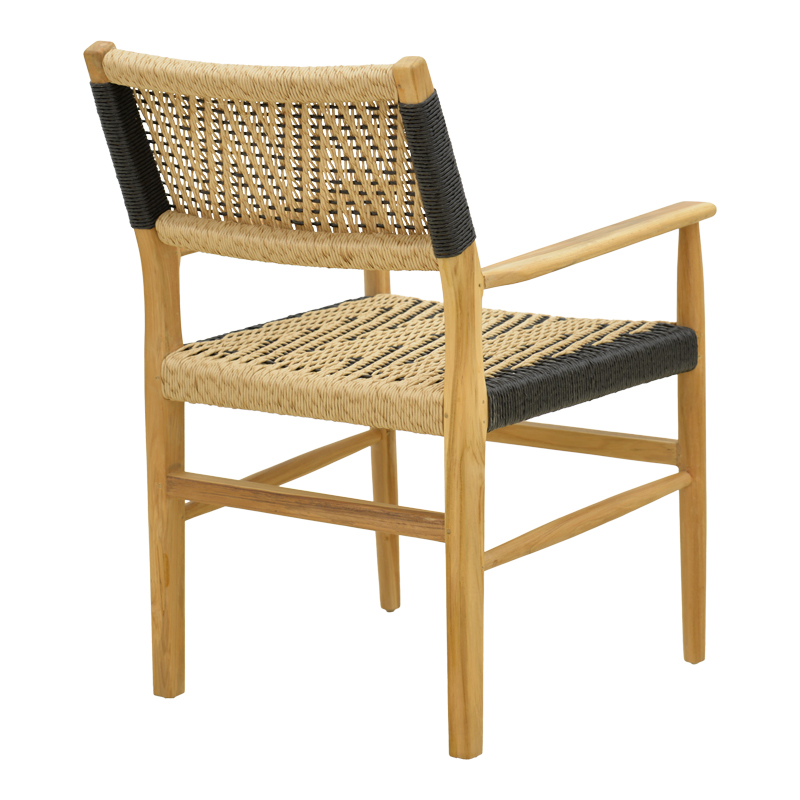 Πολυθρόνα Fermilo pakoworld σκελετός teak ξύλο με pe σχοινί σε φυσική-μαύρη απόχρωση 55x67x86εκ