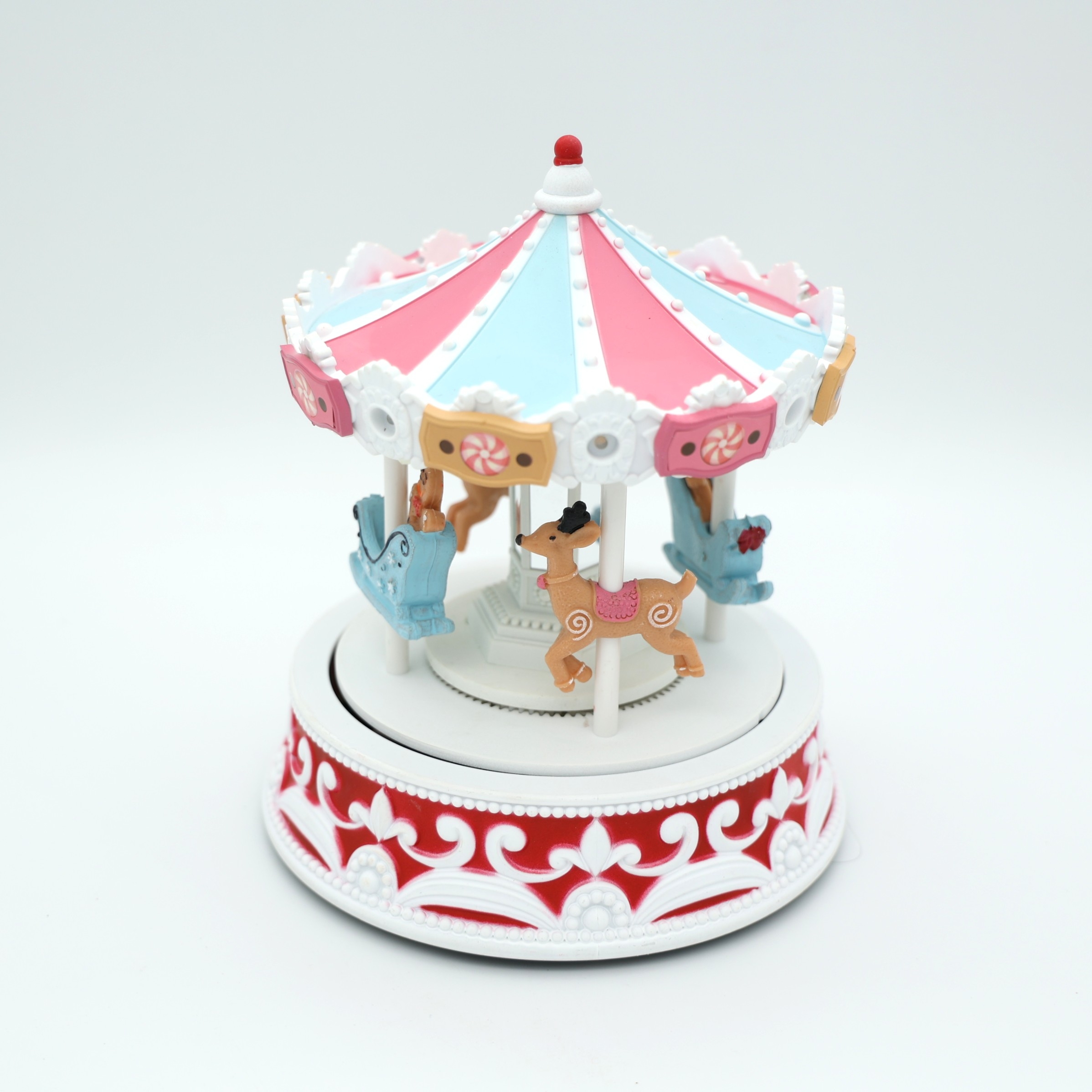 Χαριτωμένο χριστουγεννιάτικο καρουζέλ σε παστέλ αποχρώσεις, που περιστρέφεται απαλά και συνοδεύεται από μουσική, δημιουργώντας μια παραμυθένια ατμόσφαιρα. Ο συνδυασμός κίνησης και ήχου το καθιστά ιδανικό διακοσμητικό για μικρούς και μεγάλους.