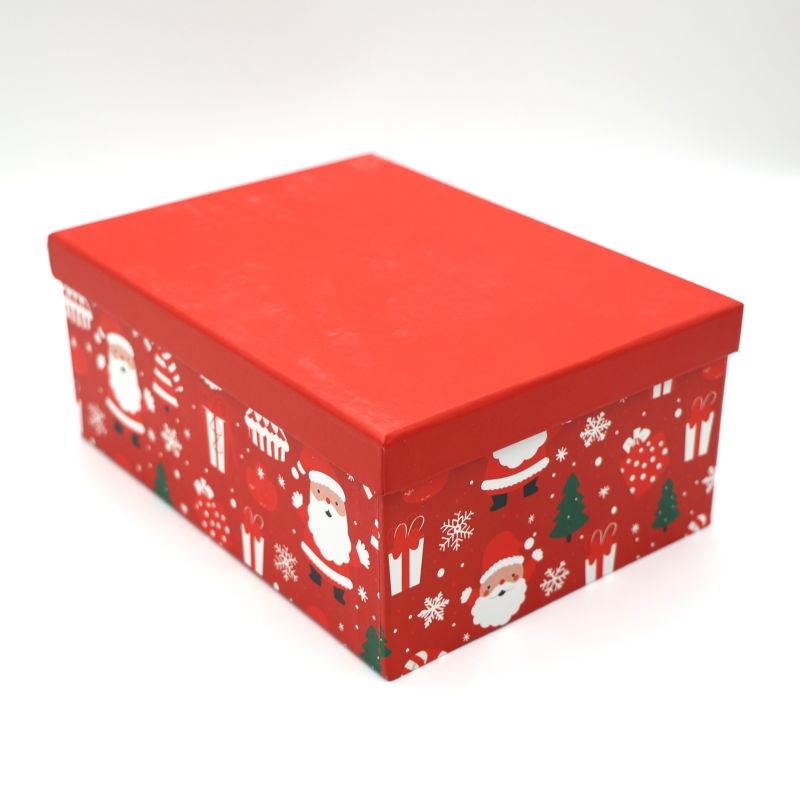 Κομψό και γιορτινό κουτί δώρου με χριστουγεννιάτικο σχέδιο, ιδανικό για να εντυπωσιάσετε από την πρώτη στιγμή. Το έντονο κόκκινο χρώμα και τα χαρούμενα μοτίβα με Άγιο Βασίλη, δώρα και χιονονιφάδες δημιουργούν μια ζεστή, εορταστική ατμόσφαιρα.