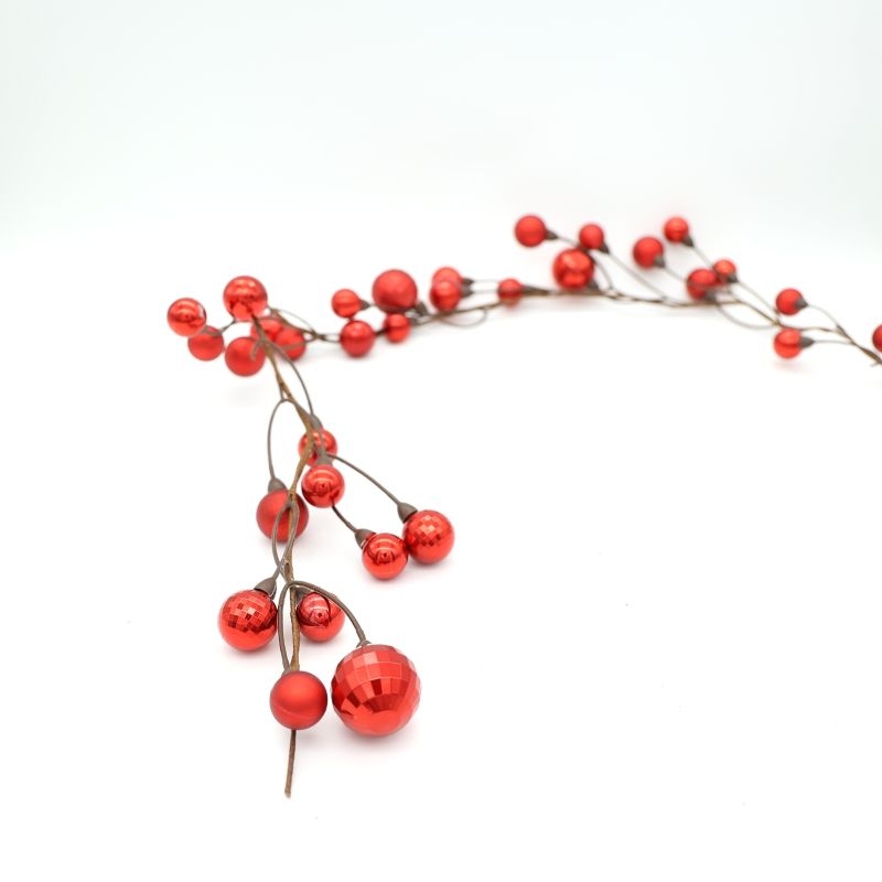 Εντυπωσιακό χριστουγεννιάτικο διακοσμητικό κλαδί με κόκκινες μπάλες σε διαφορετικά μεγέθη και υφές, που χαρίζουν λάμψη και χρώμα στη διακόσμησή σας. Ιδανικό για να συμπληρώσει συνθέσεις, στεφάνια ή το χριστουγεννιάτικο δέντρο, προσθέτοντας μια κομψή και γιορτινή πινελιά.