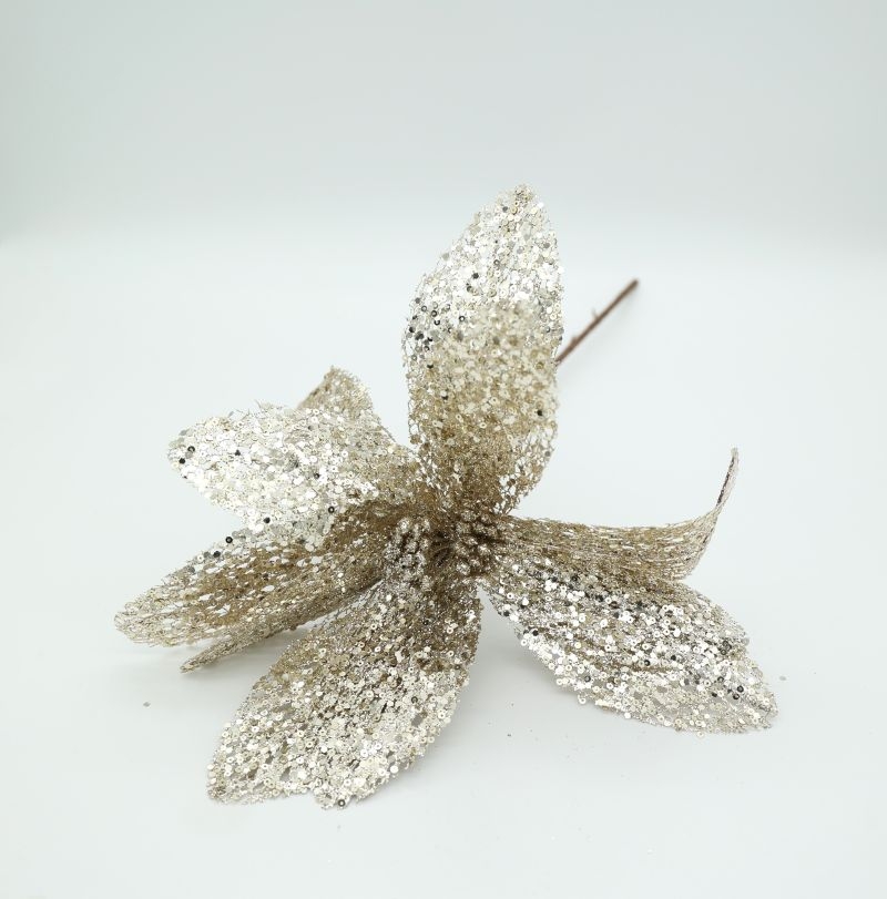 Χριστουγεννιάτικο Διακοσμητικό Λουλούδι με Παγιέτες – Σαμπανί