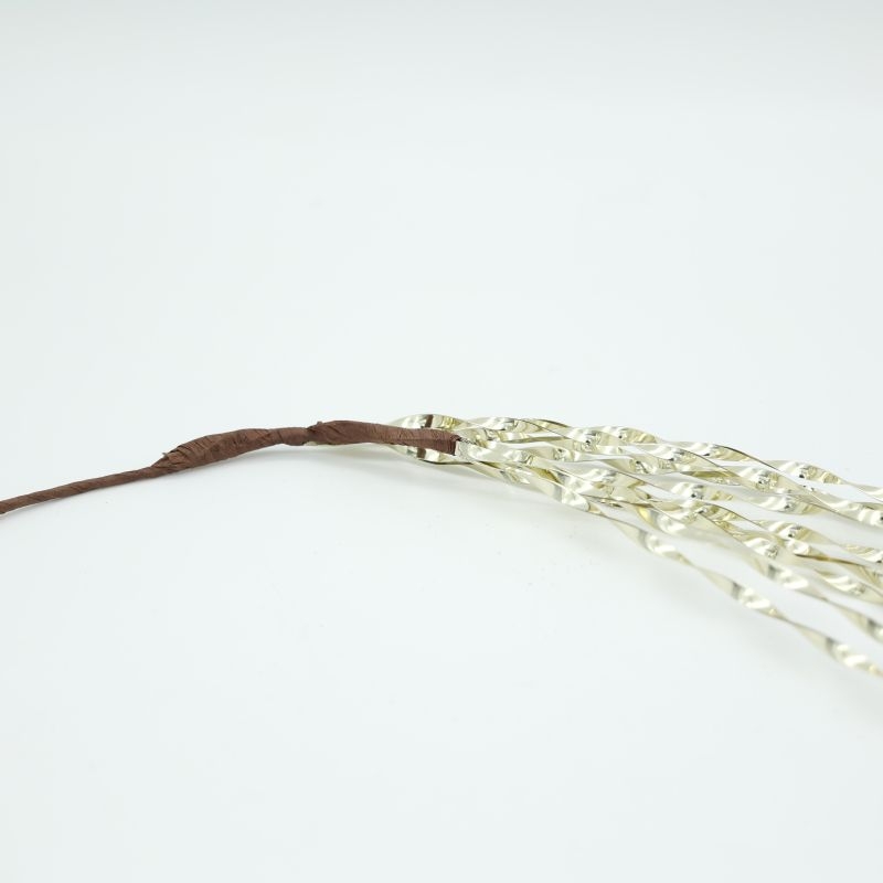 Κομψό διακοσμητικό κλαδί με στριφτές μεταλλικές λωρίδες σε χρυσή απόχρωση, που προσφέρει λάμψη και μοντέρνο χαρακτήρα στη χριστουγεννιάτικη διακόσμηση. Η μεταλλική υφή αντανακλά το φως δημιουργώντας εντυπωσιακό αποτέλεσμα, ιδανικό για elegant και luxury συνθέσεις.