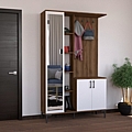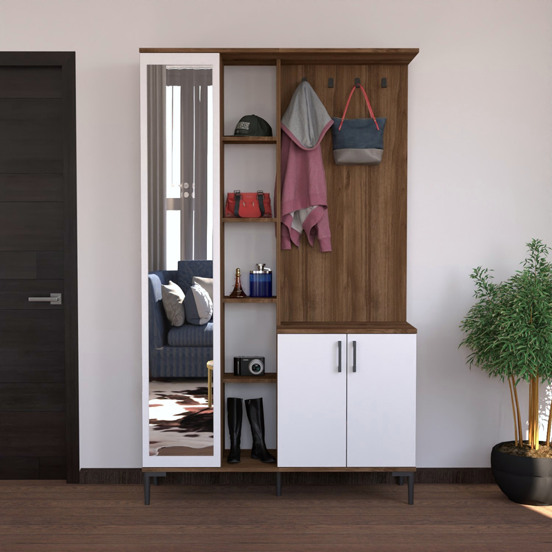 Έπιπλο εισόδου Melena pakoworld με καθρέπτη-κρεμάστρα λευκό-καρυδί 120x37.5x199εκ