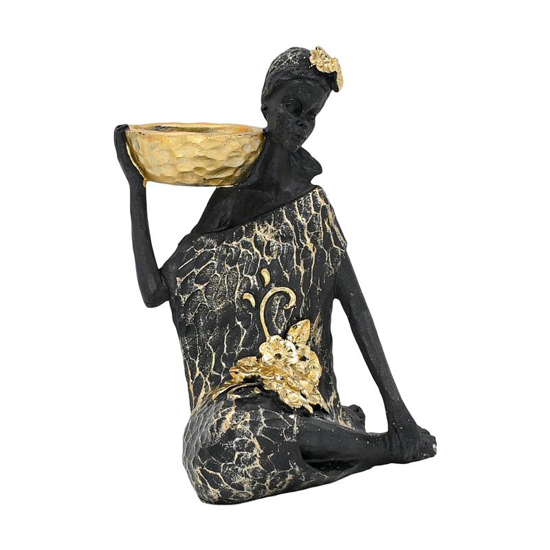 ΕΠΙΤΡΑΠΕΖΙΑ ΔΙΑΚΟΣΜΗΤΙΚΗ ΦΙΓΟΥΡΑ Fylliana FL98739 African lady ΜΑΥΡΟ-ΧΡΥΣΟ ΧΡΩΜΑ 16x7x27εκ