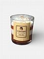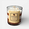 Το κερί είναι τοποθετημένο σε γυάλινο δοχείο και διαμορφωμένο σε στρώσεις που παραπέμπουν οπτικά στο dessert, με εντυπωσιακή επιφάνεια τύπου whipped cream.