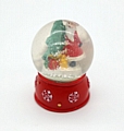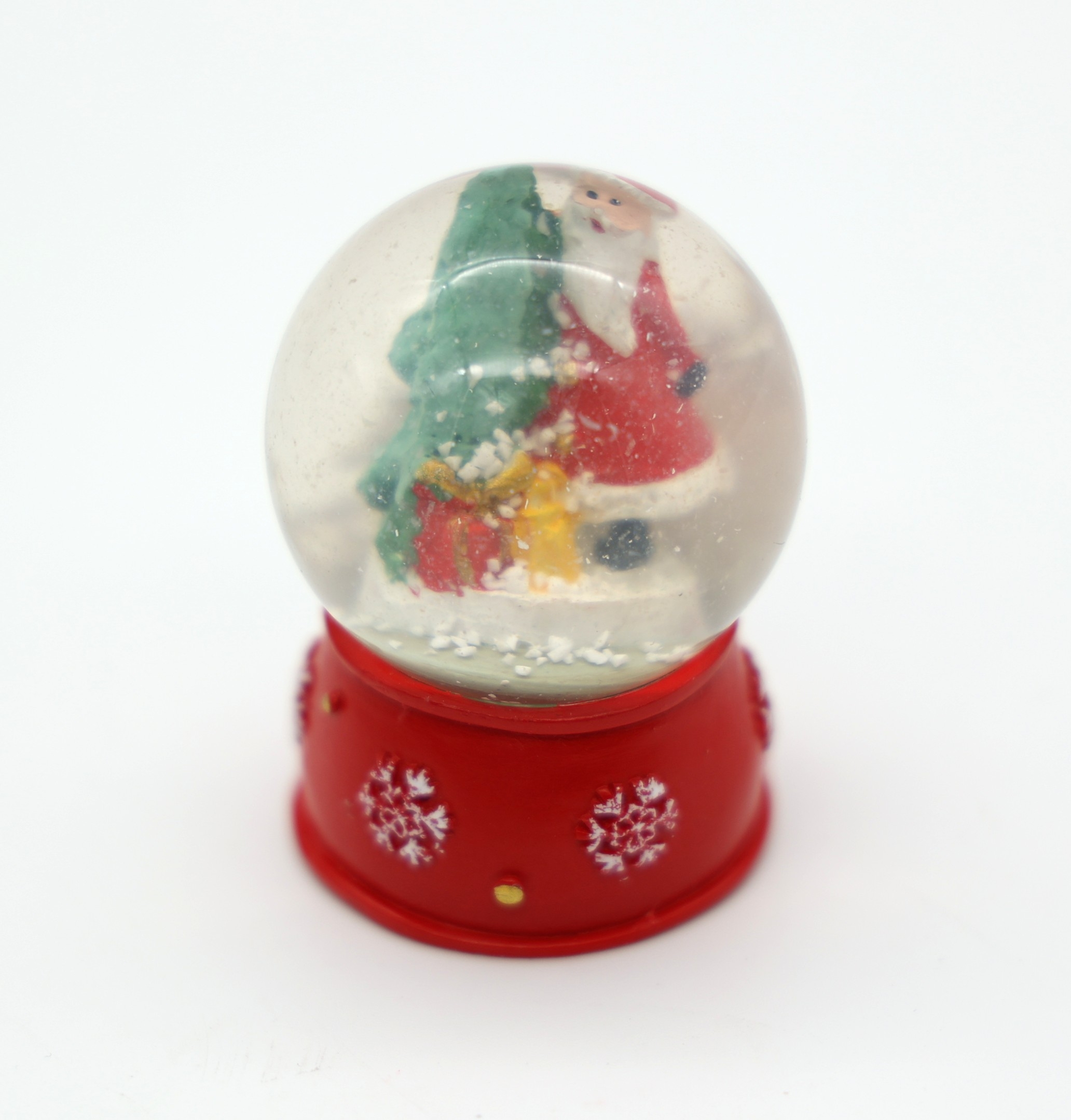Γιορτινή χριστουγεννιάτικη χιονόμπαλα με φιγούρα Άγιου Βασίλη και χριστουγεννιάτικο δέντρο στο εσωτερικό. Ανακινώντας τη σφαίρα, το “χιόνι” πέφτει δημιουργώντας μια μαγική, εορταστική ατμόσφαιρα. Η κόκκινη βάση με λευκές νιφάδες συμπληρώνει το κλασικό χριστουγεννιάτικο στυλ.