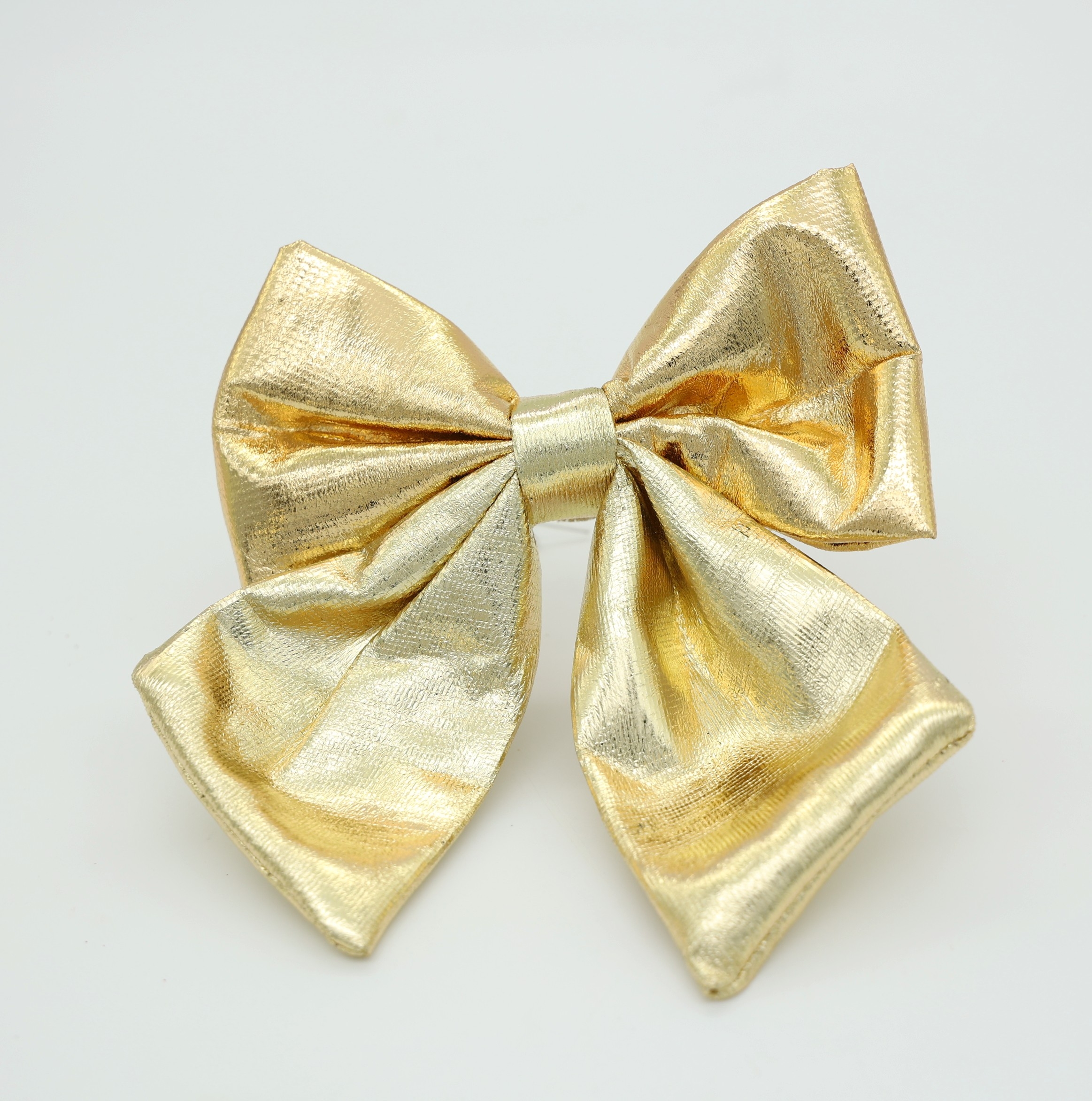 Εντυπωσιακός διακοσμητικός φιόγκος σε λαμπερό χρυσό μεταλλιζέ φινίρισμα, ιδανικός για να προσθέσει κομψότητα και πολυτέλεια στη χριστουγεννιάτικη διακόσμηση. Κατασκευασμένος από ποιοτικό ύφασμα με ανάγλυφη υφή, διατηρεί άψογα το σχήμα του και χαρίζει ένα πλούσιο, καλαίσθητο αποτέλεσμα.