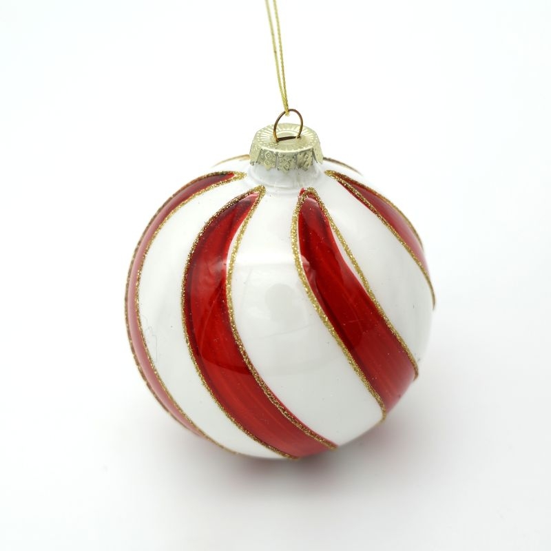Χριστουγεννιάτικη Γυάλινη Μπάλα Λευκή με Κόκκινες Ρίγες & Χρυσό Glitter