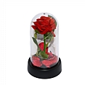 Η καμπάνα με υφασμάτινο κόκκινο τριαντάφυλλο συνδυάζει ρομαντική αισθητική και κομψότητα, αποτελώντας ιδανική πρόταση για δώρα αγάπης, επετείους ή εποχιακές συλλογές. Η καμπάνα είναι κατασκευασμένη από ανθεκτικό και διαφανές πλαστικό, ενώ στο εσωτερικό της βρίσκεται ένα προσεγμένα κατασκευασμένο υφασμάτινο τριαντάφυλλο με φύλλα και πέταλα στη βάση, δημιουργώντας μια εντυπωσιακή σύνθεση. Η ενσωματωμένη φωτεινή λειτουργία LED αναδεικνύει τη λεπτομέρεια του λουλουδιού και προσφέρει ατμοσφαιρική λάμψη, κατάλληλη για τοποθέτηση σε κομοδίνα, ράφια, βιτρίνες ή πάγκους. Με διαστάσεις 8.5×15 cm, προσφέρει έναν ισορροπημένο όγκο που τραβάει την προσοχή χωρίς να απαιτεί μεγάλο χώρο.