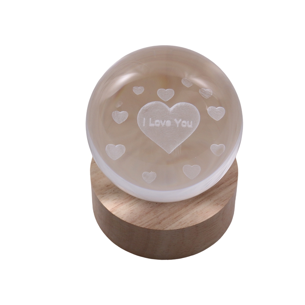 Γυάλα με Χάραξη & Φως – I Love You, Διάμετρος 8cm