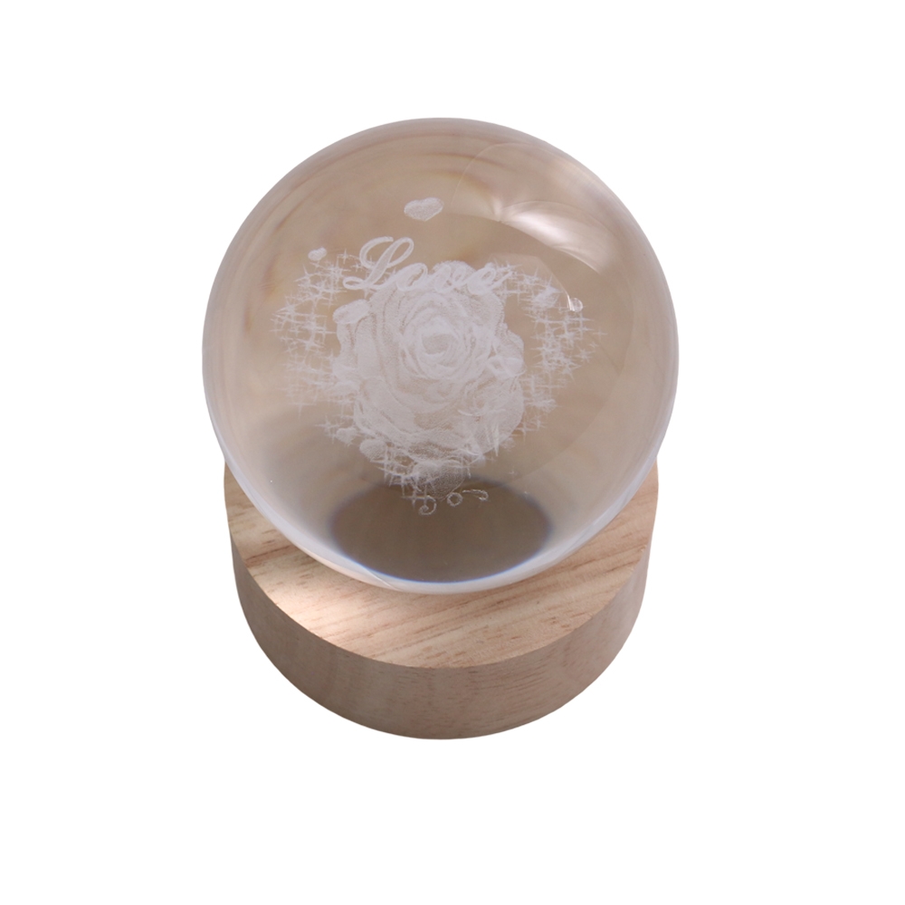 Γυάλα με Χάραξη & Φως – Τριαντάφυλλο, Διάμετρος 8cm