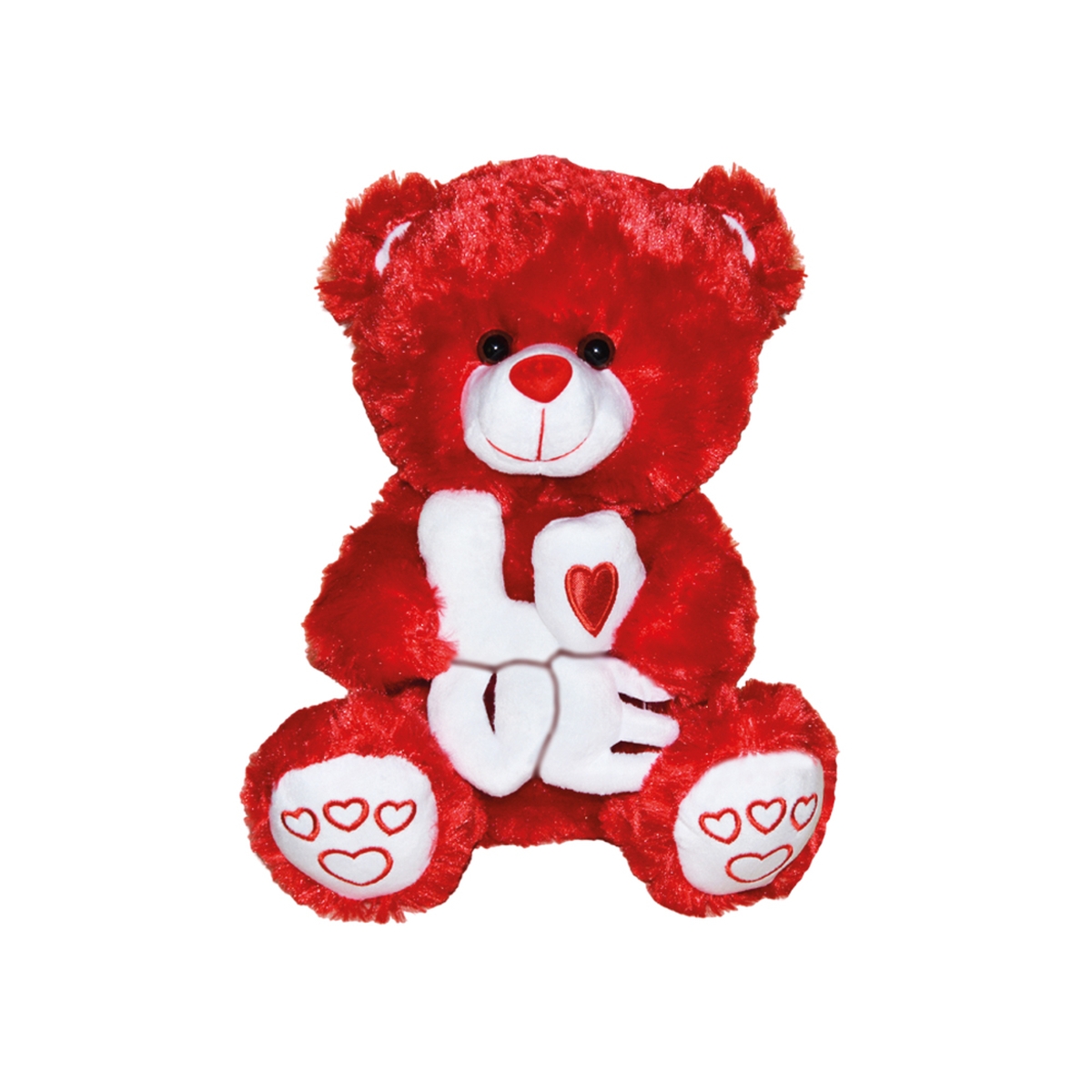Λούτρινο αρκουδάκι με ρομαντικό σχεδιασμό, διαθέσιμο σε κόκκινο και λευκό χρώμα, με μαλακά γράμματα που σχηματίζουν τη λέξη “LOVE”. Το γράμμα “O” συνοδεύεται από διακοσμητική καρδιά, ενώ στα πέλματα υπάρχουν κεντημένες καρδιές που ενισχύουν τον εορταστικό χαρακτήρα του προϊόντος. Κατασκευασμένο από απαλό και ποιοτικό ύφασμα, προσφέρει ευχάριστη υφή και προσεγμένη εμφάνιση. Διατίθεται σε διαστάσεις 30cm, 36cm, 45cm και 56cm.