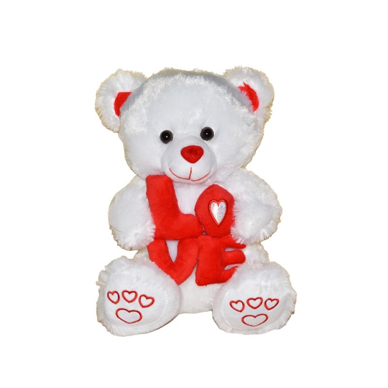 Λούτρινο αρκουδάκι με ρομαντικό σχεδιασμό, διαθέσιμο σε κόκκινο και λευκό χρώμα, με μαλακά γράμματα που σχηματίζουν τη λέξη “LOVE”. Το γράμμα “O” συνοδεύεται από διακοσμητική καρδιά, ενώ στα πέλματα υπάρχουν κεντημένες καρδιές που ενισχύουν τον εορταστικό χαρακτήρα του προϊόντος. Κατασκευασμένο από απαλό και ποιοτικό ύφασμα, προσφέρει ευχάριστη υφή και προσεγμένη εμφάνιση. Διατίθεται σε διαστάσεις 30cm, 36cm, 45cm και 56cm.