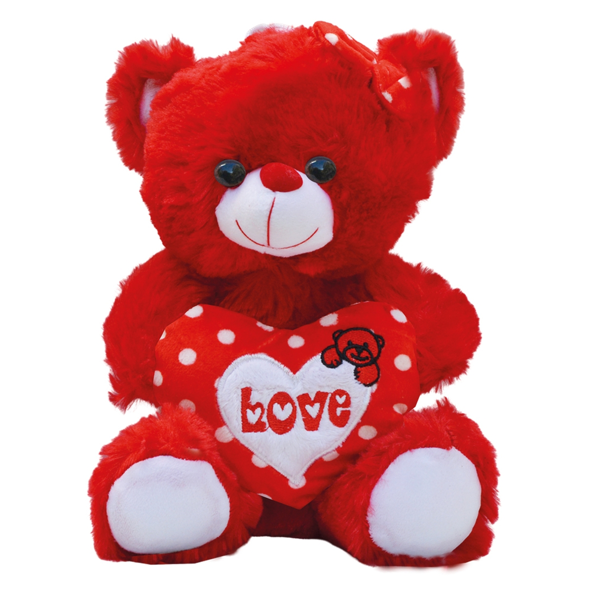 Το λούτρινο αρκουδάκι “Love”, ύψους 30cm, αποτελεί μια τρυφερή και λαχταριστή επιλογή για δώρα αγάπης. Διατίθεται σε δύο χρώματα — κόκκινο και λευκό — και κρατάει μια καρδιά με πουά σχέδιο και κεντημένο μήνυμα “Love”, καθώς και ένα χαριτωμένο αρκουδάκι πάνω στο σχέδιο. Η απαλή βελούδινη υφή και τα έντονα χρώματα το κάνουν ιδανικό για: