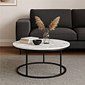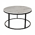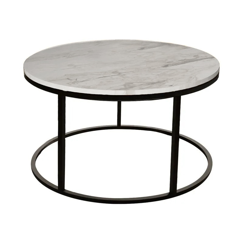 Τραπέζι σαλονιού Sikele pakoworld λευκή όψη μαρμάρου και μαύρα μεταλλικά πόδια Φ60x40εκ