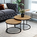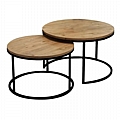 Τραπέζια σαλονιού Solme pakoworld 2τεμ φυσική απόχρωση με μαύρα μεταλλικά πόδια