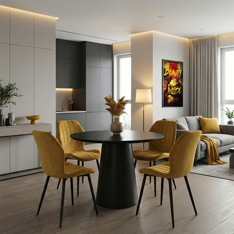 Τραπεζαρία με Καρέκλες Jelour Κίτρινο και Τραπέζι Donda Μαύρο Φ100x76 Σετ 5τεμ