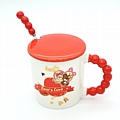 Κεραμική κούπα Αγίου Βαλεντίνου χωρητικότητας 340ml. Η κούπα συνοδεύεται από κεραμικό καπάκι, που βοηθά στη διατήρηση της θερμοκρασίας του ροφήματος, καθώς και από κουταλάκι με διακοσμητική λαβή, προσφέροντας ολοκληρωμένη και πρακτική χρήση.