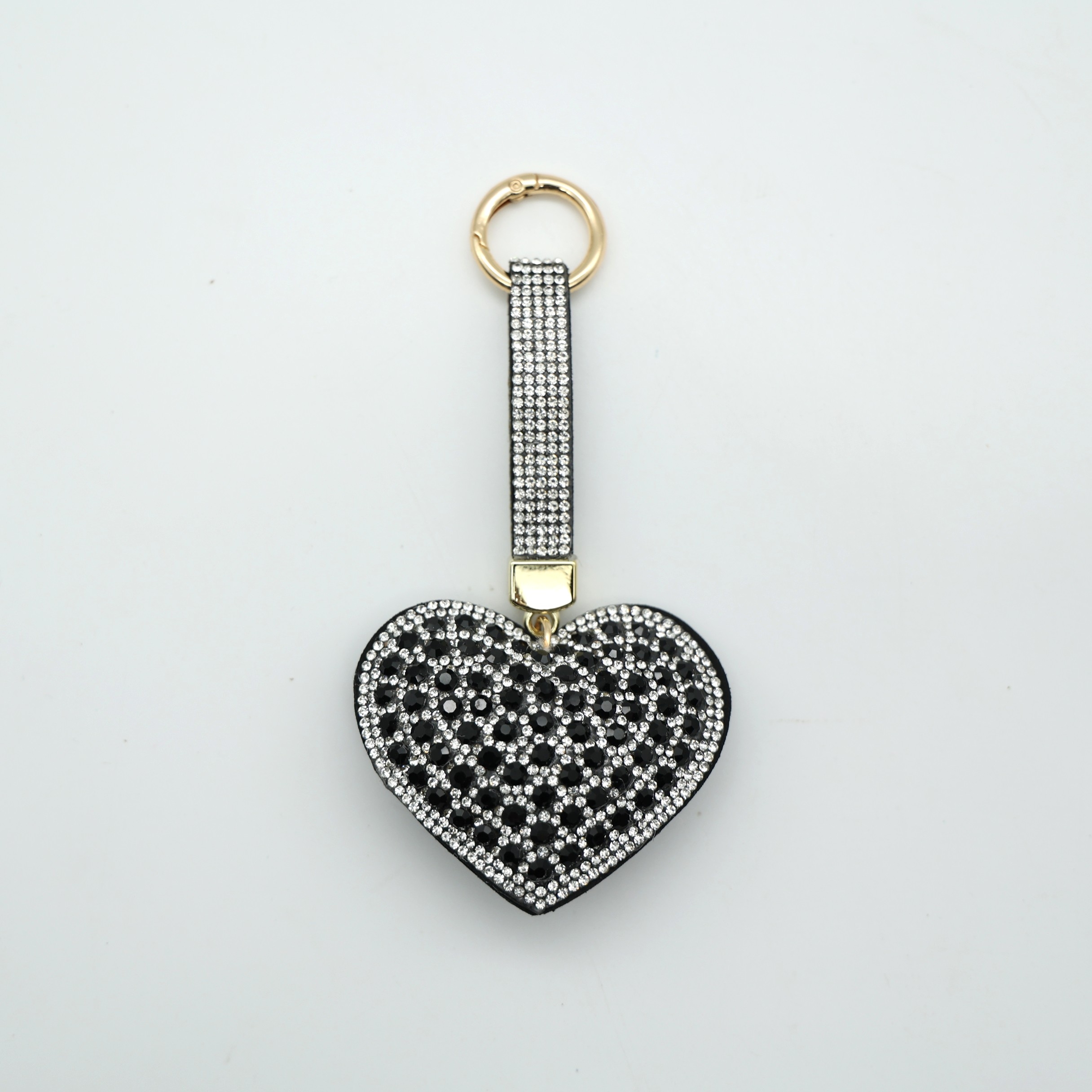 Μπρελόκ Καρδιά με Στρας & Υφασμάτινη Πλάτη - Μαύρο