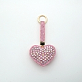 Μπρελόκ Καρδιά με Στρας & Υφασμάτινη Πλάτη - Ροζ