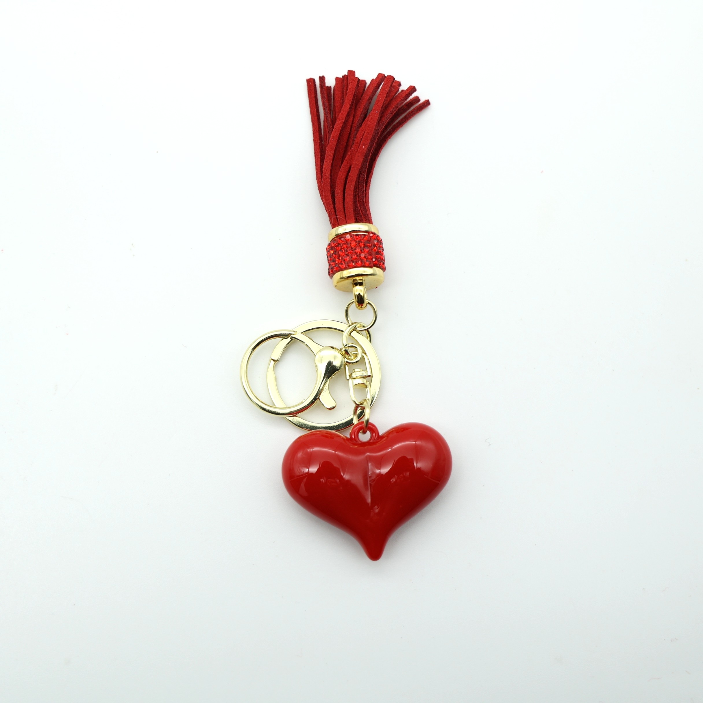 Κομψό μπρελόκ με καρδιά και διακοσμητικό κρόσσι, ιδανικό για κλειδιά, τσάντες ή πορτοφόλια. Η λαμπερή μεταλλική λεπτομέρεια και το έντονο χρώμα της καρδιάς προσθέτουν μια μοντέρνα και ρομαντική πινελιά στην καθημερινή χρήση.