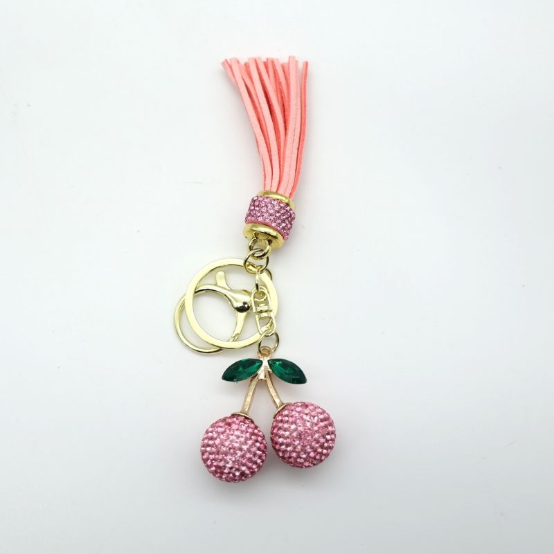 Μπρελόκ Κερασάκια με Στρας - Ροζ