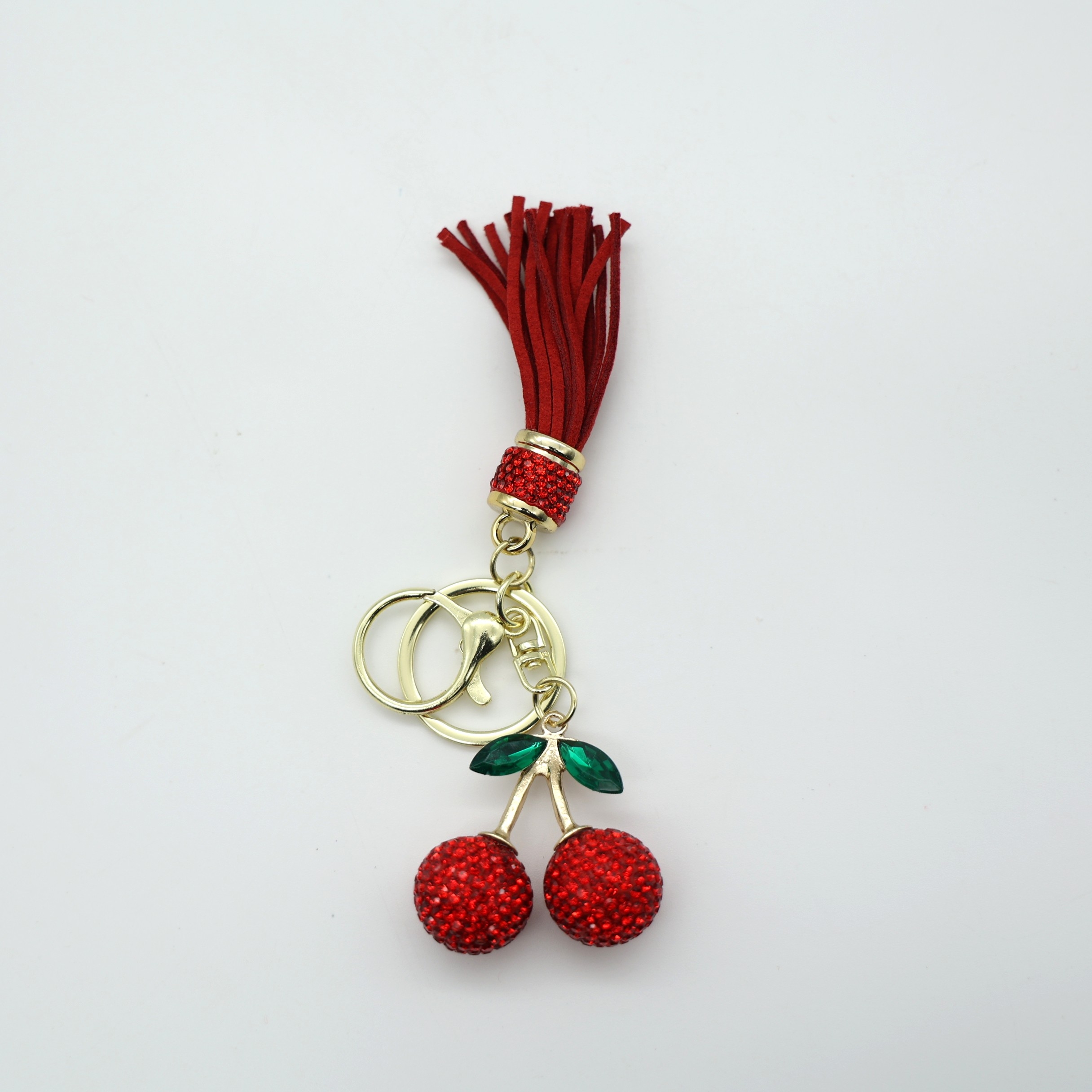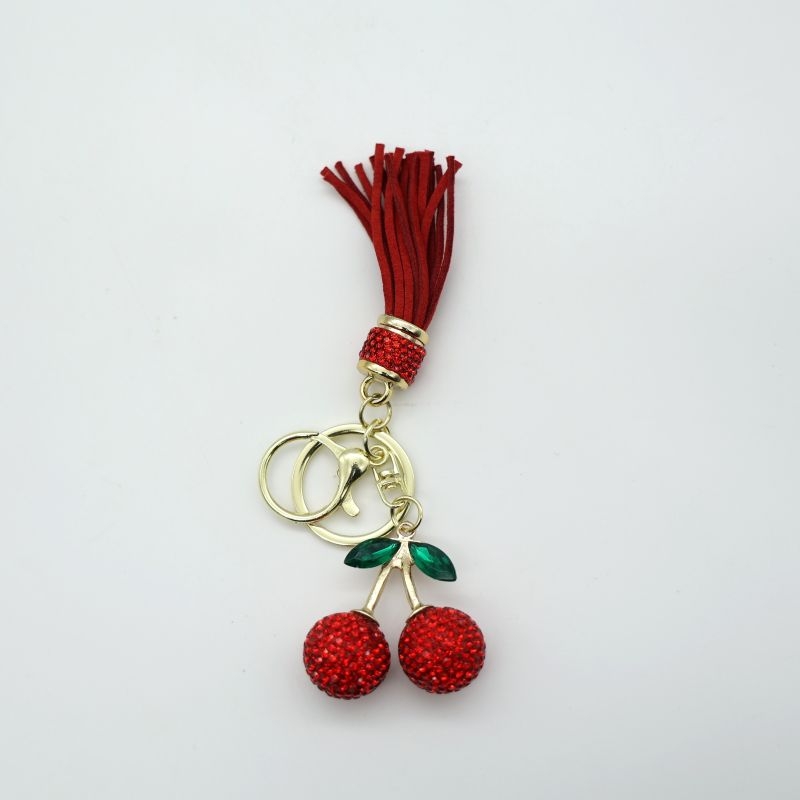 Μπρελόκ σε σχήμα κερασάκια, διακοσμημένα με λαμπερά στρας και κορδονάκι σε έντονα χρώματα. Ιδανικά για όσους θέλουν να προσθέσουν χρώμα και λάμψη στα κλειδιά ή στην τσάντα τους. Κατασκευασμένα με προσοχή στη λεπτομέρεια, αποτελούν εξαιρετική επιλογή για δώρο.