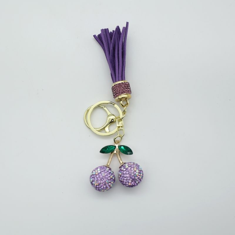 Μπρελόκ Κερασάκια με Στρας - Μωβ
