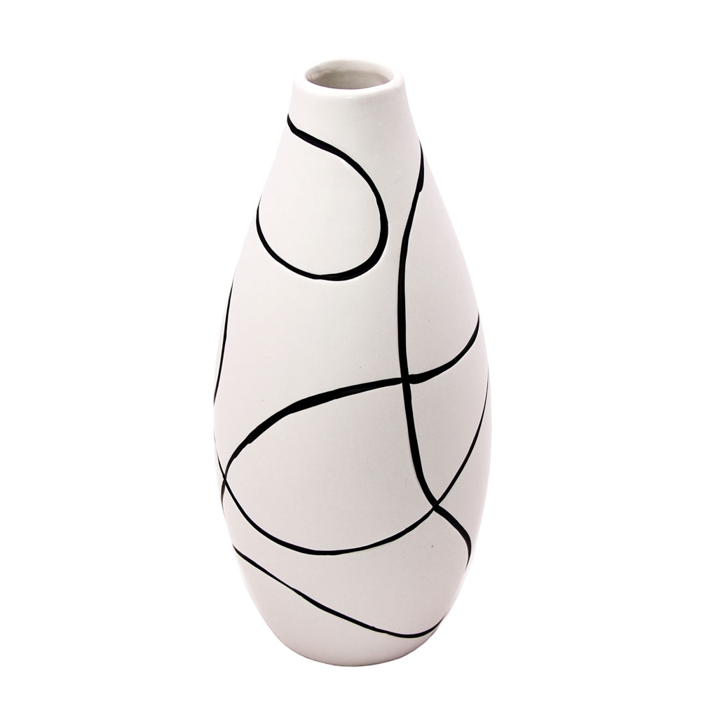Μοντέρνο κεραμικό βάζο με μαύρες αφηρημένες γραμμές, 31cm