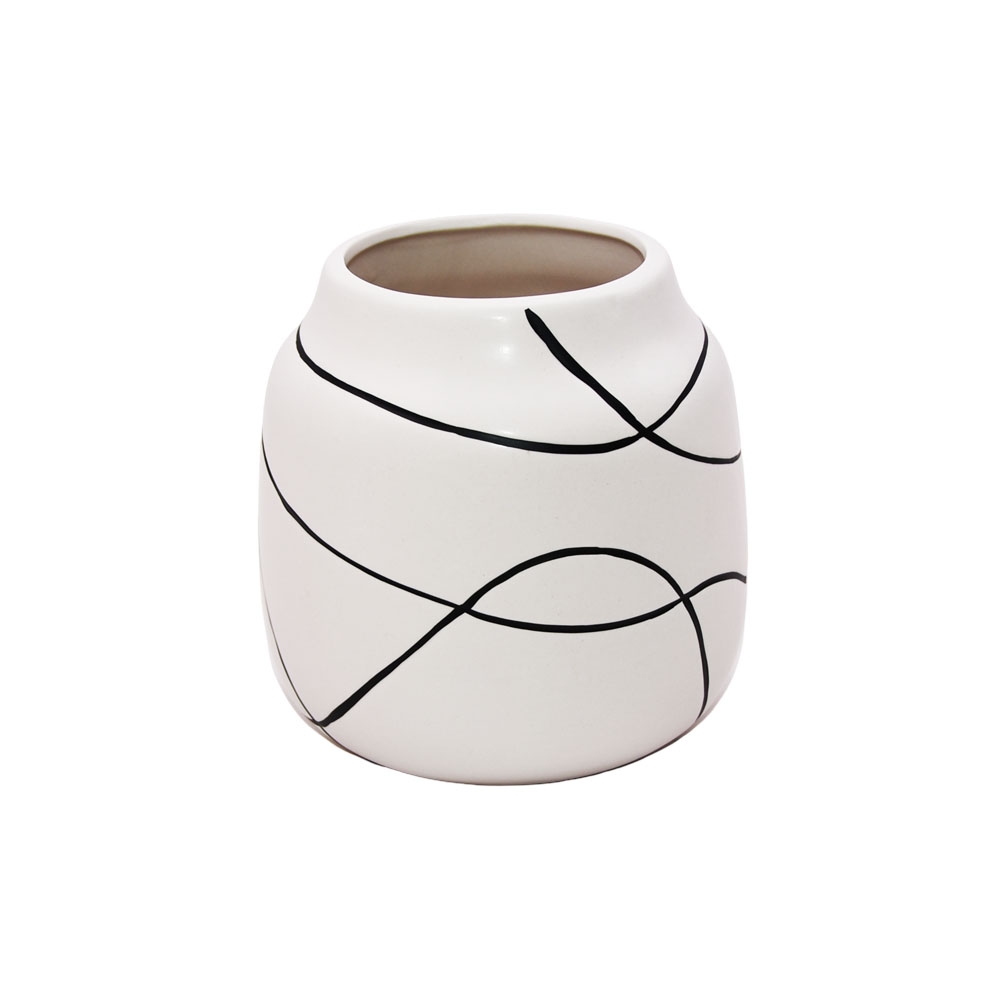 Μοντέρνο κεραμικό βάζο με μαύρες αφηρημένες γραμμές, 17cm