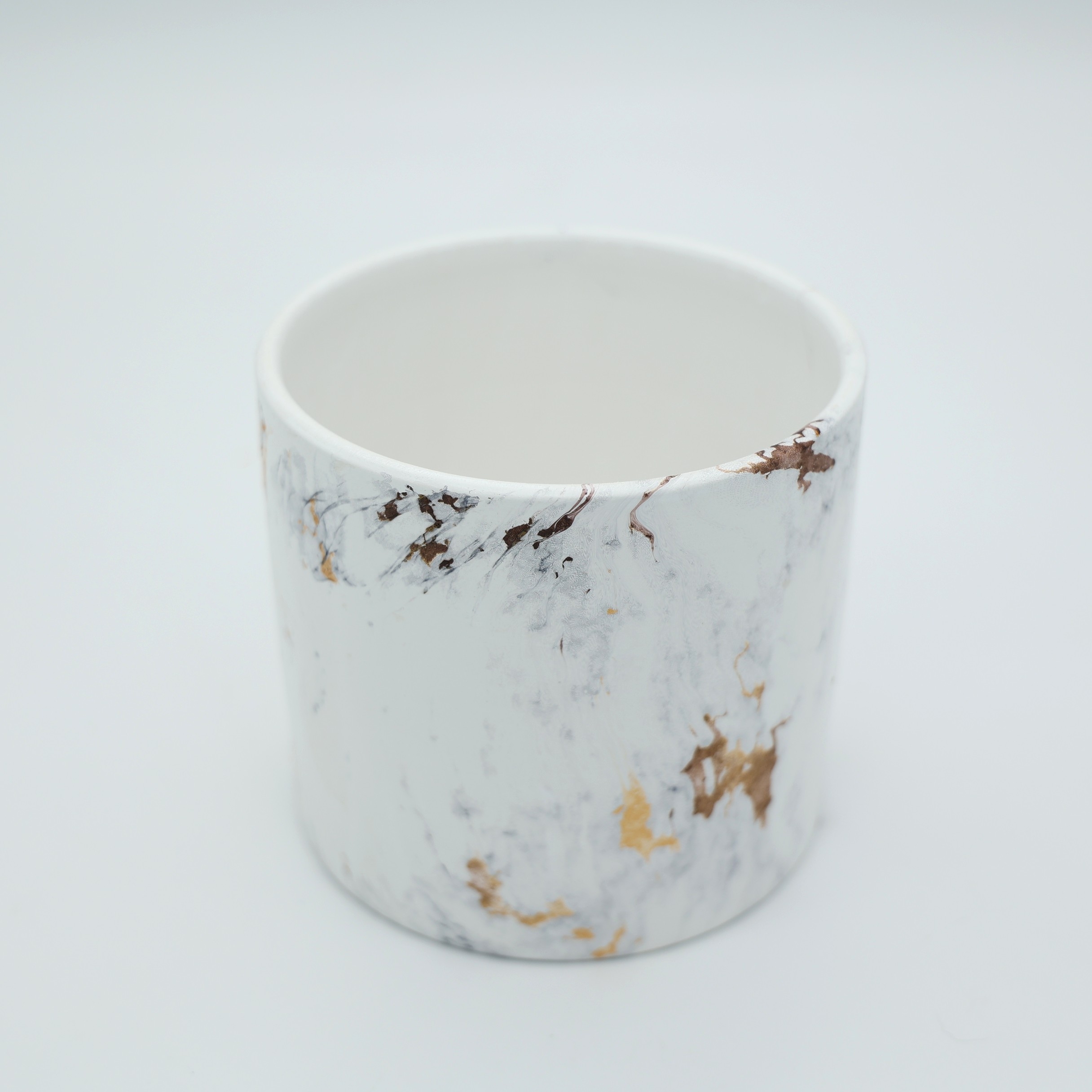 Κεραμικό κασπώ με ματ υφή, ιδανικό για κάθε χώρο που απαιτεί κομψή και διακριτική διακοσμητική πινελιά. Τα σχέδια περιλαμβάνουν αποχρώσεις λευκού με λεπτές χρωματιστές φλέβες, δημιουργώντας μια μίνιμαλ και σύγχρονη αισθητική που ταιριάζει τόσο σε οικιακές όσο και σε επαγγελματικές διακοσμήσεις. Με διαστάσεις 12.5x11.5cm, το κασπώ προσφέρει άνετο χώρο για φυτά εσωτερικού χώρου, ανθοσυνθέσεις ή διακοσμητικές τοποθετήσεις. Η κεραμική του κατασκευή εξασφαλίζει σταθερότητα, αντοχή και διαχρονική χρήση, ενώ ο minimal σχεδιασμός το καθιστά εύκολα συνδυάσιμο με κάθε στιλ διακόσμησης.