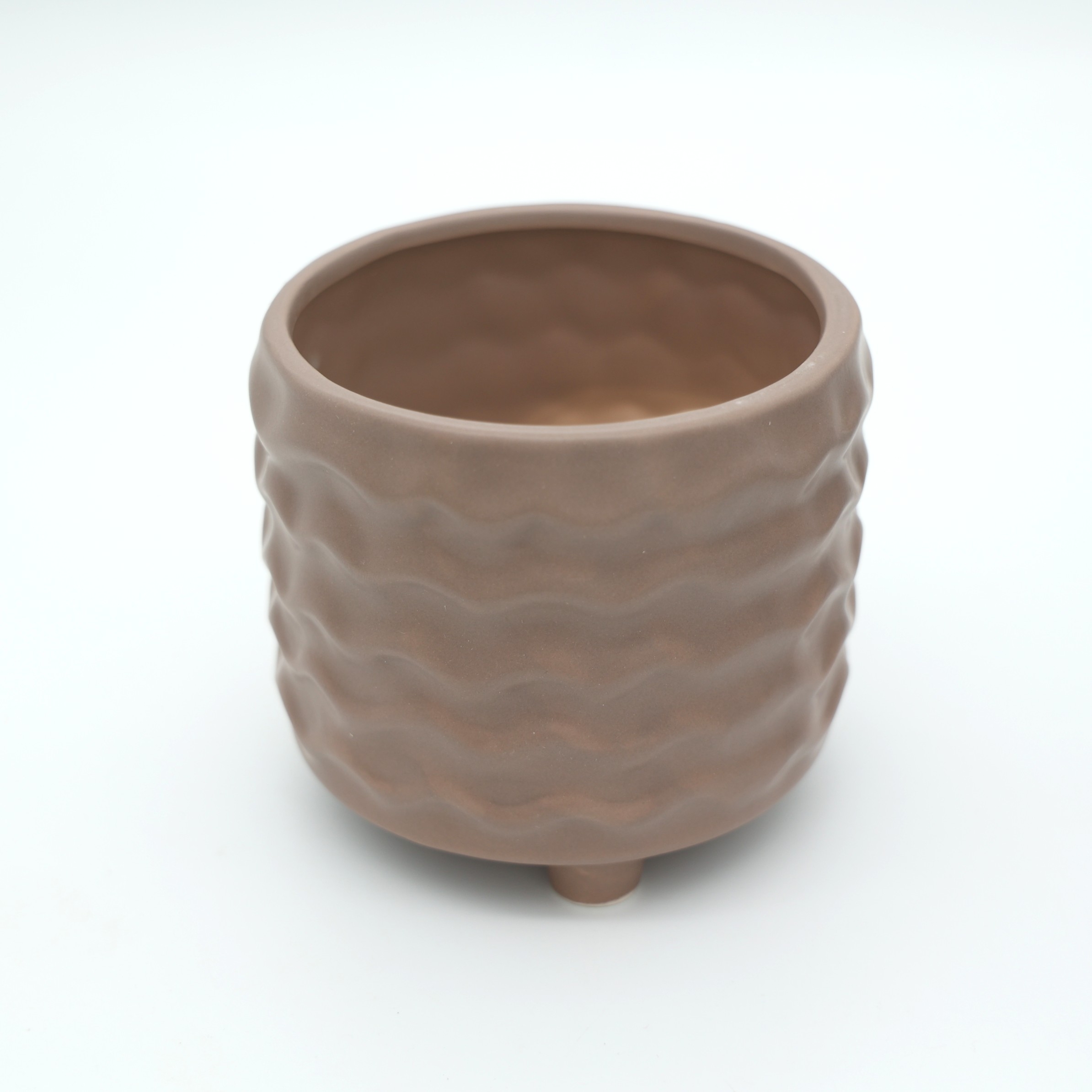 Το κομψό κεραμικό κασπώ με κυματιστό ανάγλυφο σχέδιο, αποτελεί μια εξαιρετική επιλογή για μοντέρνους και κλασικούς χώρους. Με διαστάσεις 13x13x11.5cm, είναι ιδανικό για μικρά και μεσαίου μεγέθους φυτά όπως παχύφυτα, χαμηλά φυλλώδη, κάκτους ή διακοσμητικές ανθοσυνθέσεις. Η στιβαρή κεραμική κατασκευή του παρέχει σταθερότητα, ενώ τα μικρά ποδαράκια στη βάση του προσθέτουν χαρακτήρα και ανύψωση, προσφέροντας επιπλέον αισθητική και καλύτερο αερισμό.