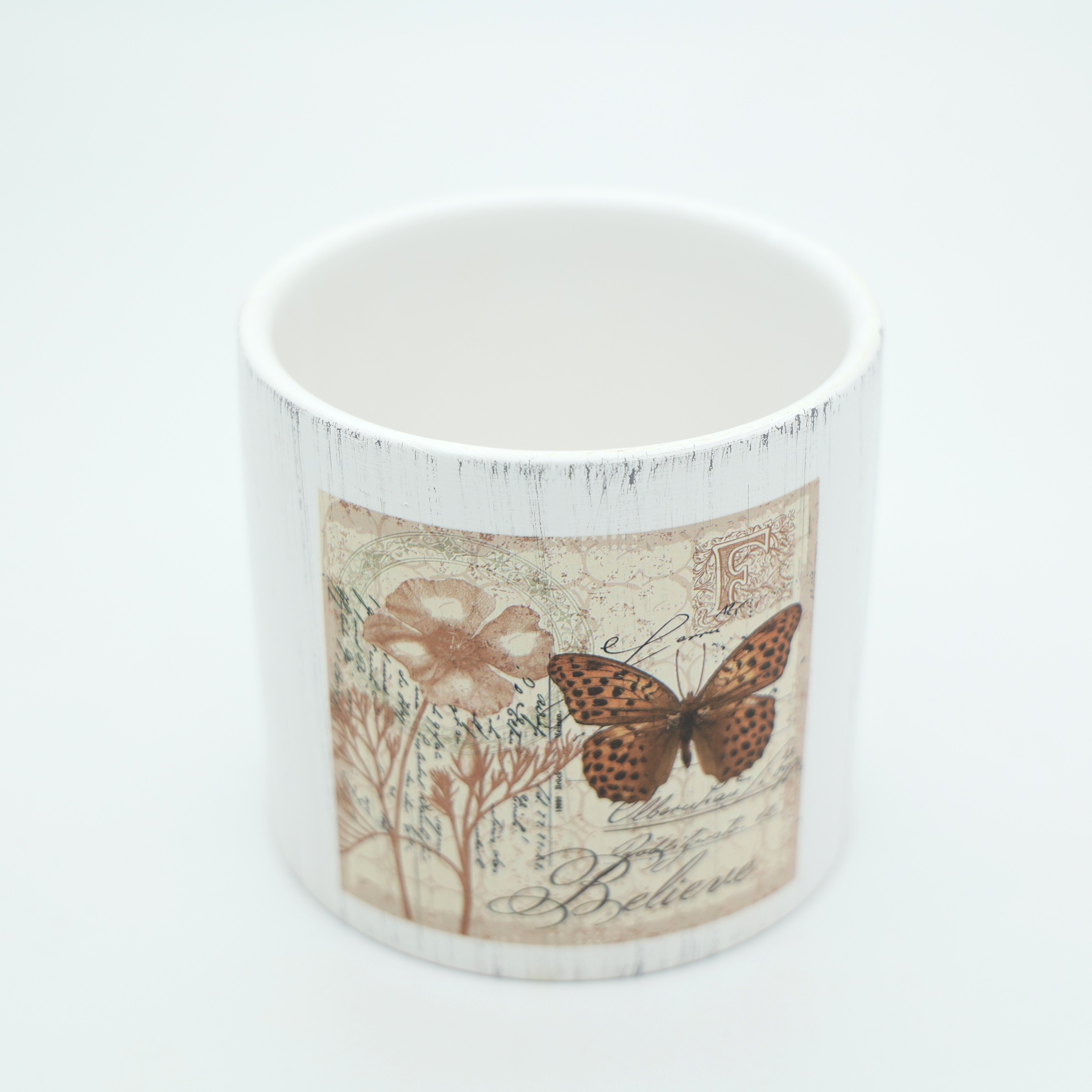 Κεραμικό κασπώ με πεταλούδες, εμπνευσμένα από vintage botanical αισθητική. Οι λεπτομερείς παραστάσεις και οι γήινες αποχρώσεις το καθιστούν ιδανικό για κάθε χώρο που χρειάζεται μια κομψή και φυσική διακοσμητική πινελιά. Με διαστάσεις 11.5x10.5cm, το κασπώ προσφέρει άνετο χώρο για φυτά εσωτερικού χώρου, μικρές ανθοσυνθέσεις ή διακοσμητικές τοποθετήσεις.