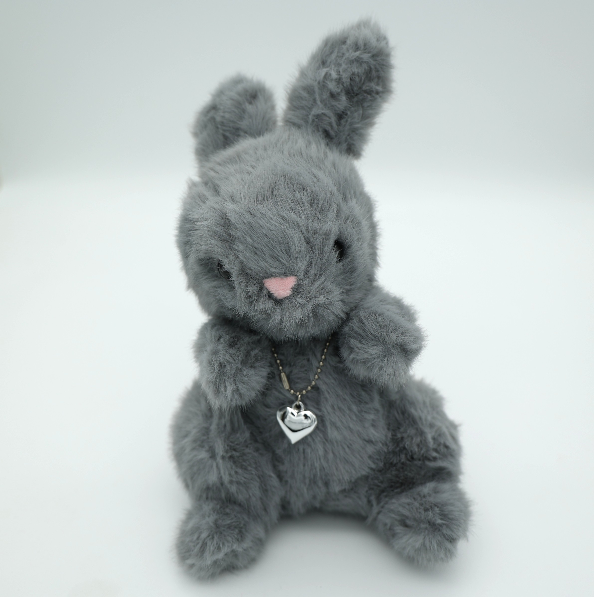 Λούτρινος Γκρι Λαγός με Καρδούλα – 25cm