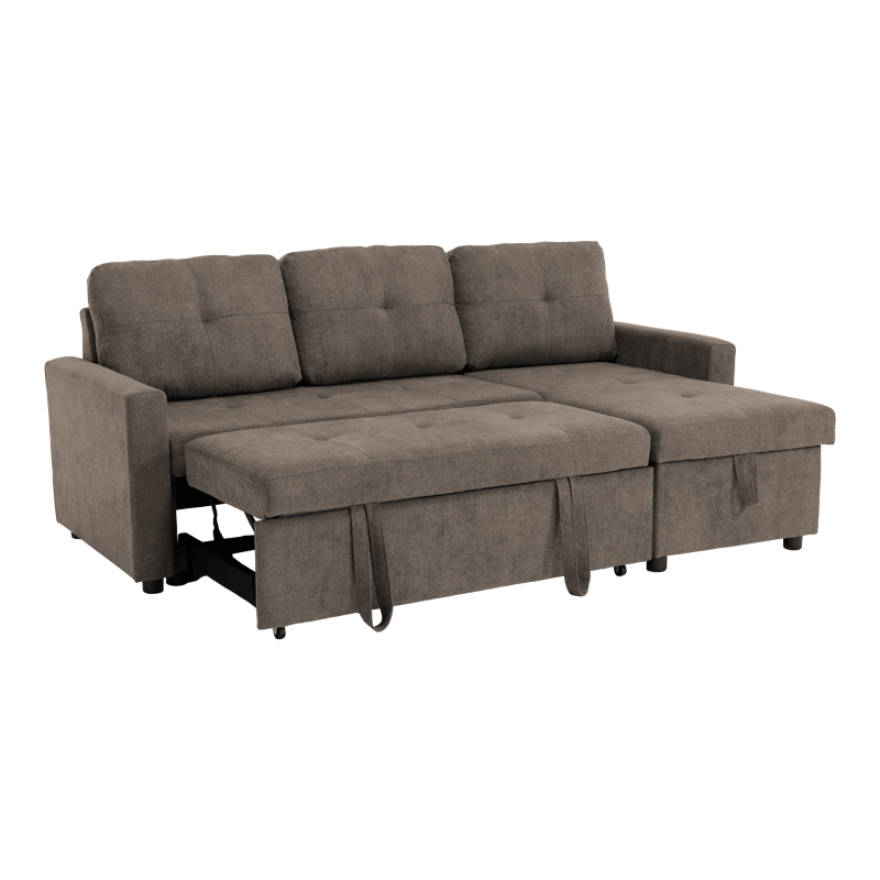 - Φέρει εύχρηστο μηχανισμό που με μία μόνο κίνηση ανασηκώνεται, μετατρέποντας τον καναπέ σε κρεβάτι και το αντίστροφο.