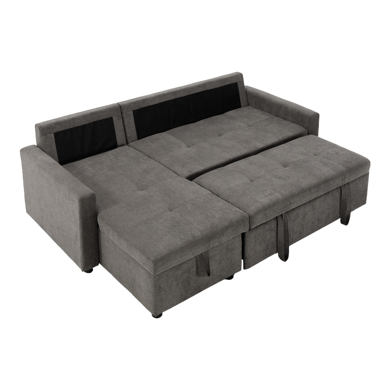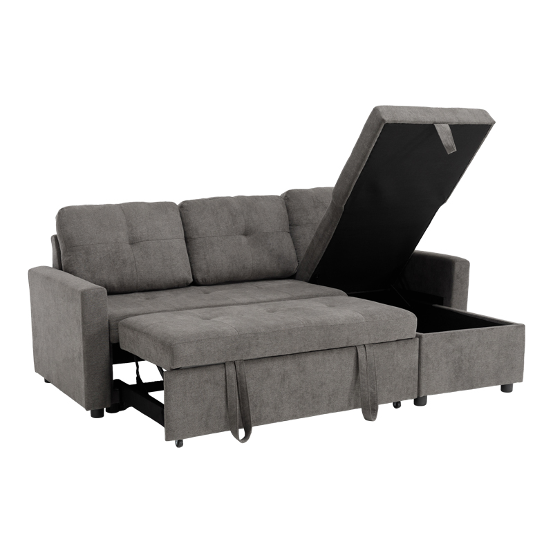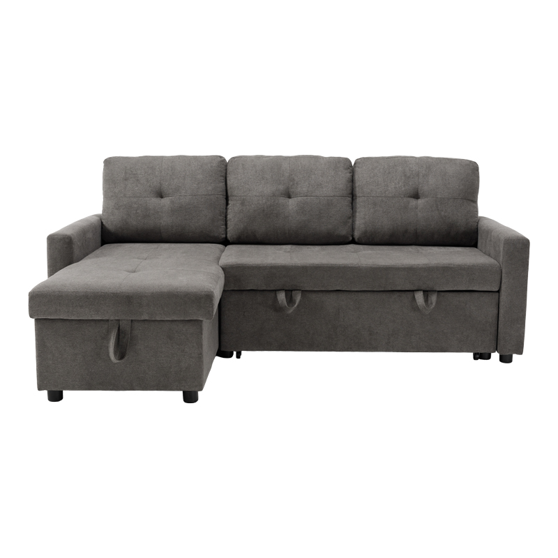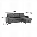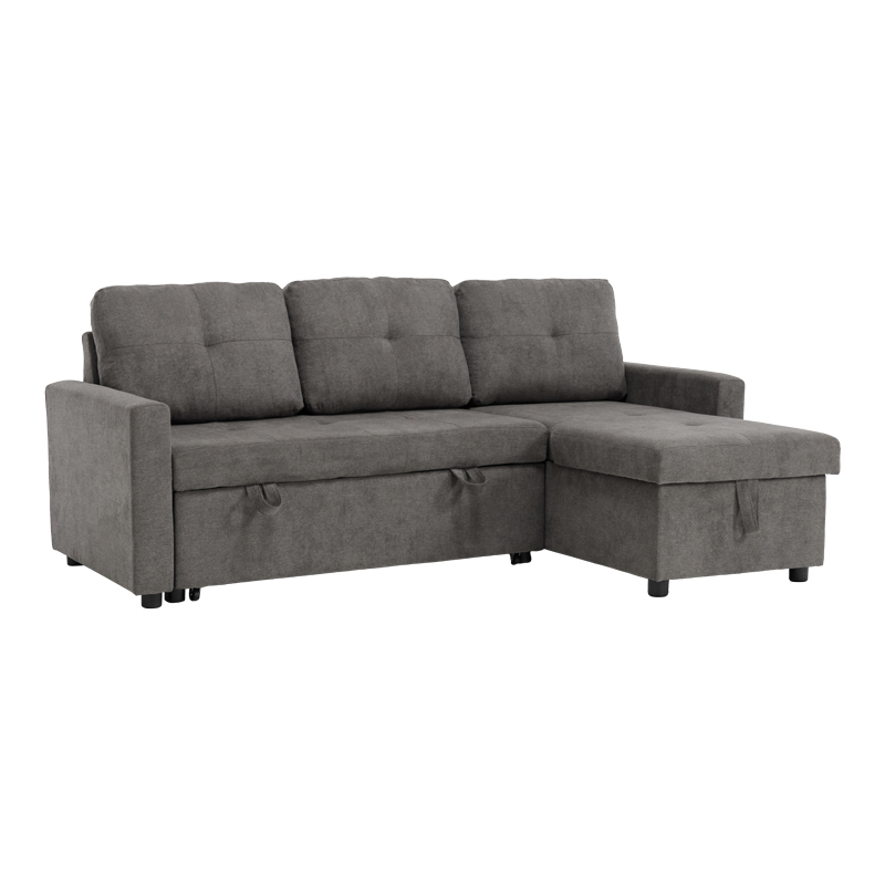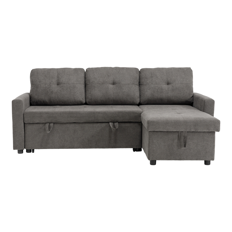 Γωνιακός αναστρέψιμος καναπές κρεβάτι Napora pakoworld με αποθηκευτικό χώρο γκρι ύφασμα 214x83/138x90εκ