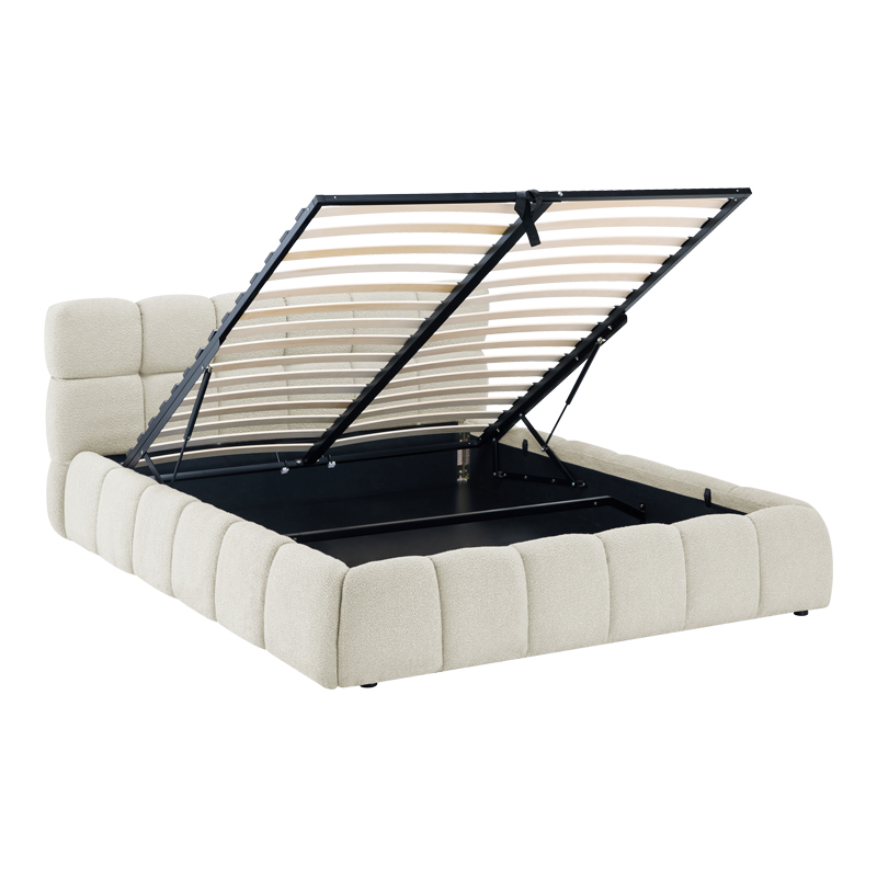 Κρεβάτι Jeby pakoworld ύφασμα σε κρεμ απόχρωση με αποθηκευτικό χώρο 160x200εκ