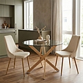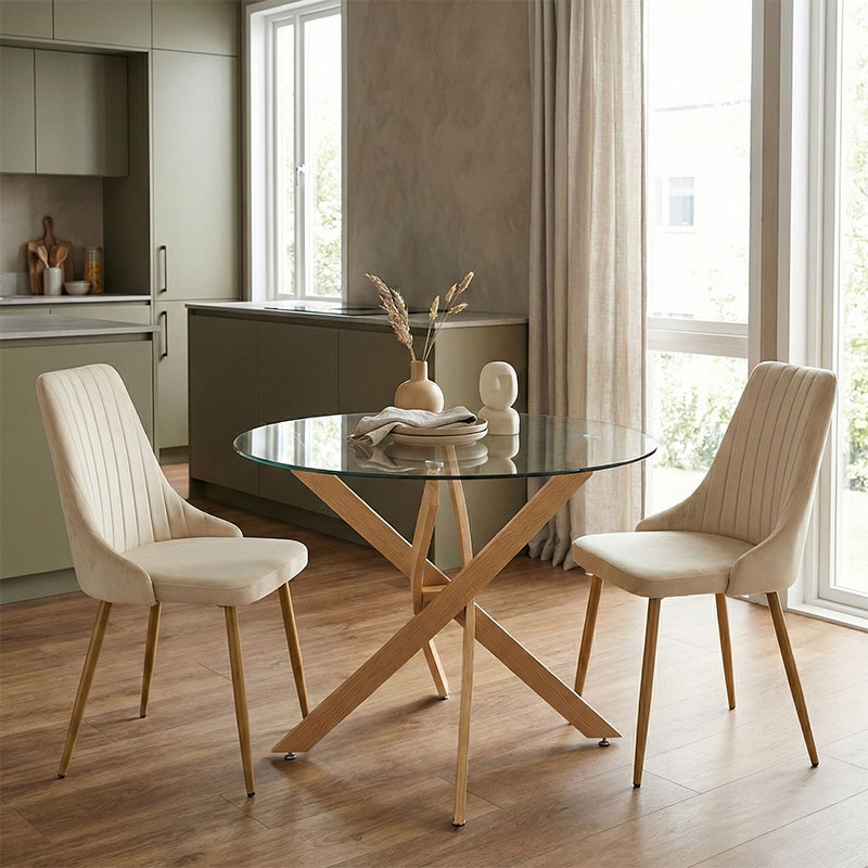 Τραπεζαρία με Καρέκλες Azori Μπεζ και Τραπέζι Antoro Γυαλί Φ80x75εκ Σετ 3τεμ