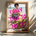 Ο πίνακας Catem είναι ένα εντυπωσιακό και χιουμοριστικό statement piece, ιδανικό για όσους αγαπούν τις γάτες και την μοντέρνα τέχνη. Συνδυάζει την κλασική τέχνη με το σύγχρονο design. Μια κλασική αναπαραγωγή πορτρέτου γυναίκας σε vintage ενδυμασία, καθισμένη με μια γάτα στα πόδια της. Η φράση "I ONLY TALK TO MY CAT" (Μιλάω μόνο στη γάτα μου) εμφανίζεται σε έντονα, ροζ γράμματα πάνω από την κεντρική φιγούρα. Το μήνυμα είναι μια χαριτωμένη, υπερβολική αναφορά στην αγάπη για τα κατοικίδια, προσδίδοντας χιούμορ και μια ανάλαφρη διάθεση στον χώρο.