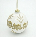 Εντυπωσιακή χριστουγεννιάτικη μπάλα σε κομψό λευκό χρώμα, διακοσμημένη με περίτεχνα χρυσά σχέδια και διακριτικό glitter που χαρίζει πολυτελή λάμψη στο δέντρο. Ο elegant σχεδιασμός της την καθιστά ιδανική για κλασικό και luxury χριστουγεννιάτικο στολισμό.