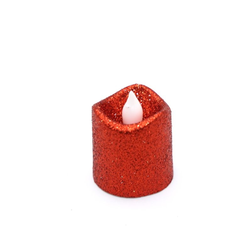 Διακοσμητικό κεράκι LED με μπαταρίες σε κόκκινο glitter σχέδιο. Δημιουργεί ζεστή ατμόσφαιρα, ιδανικό για σπίτι, γιορτές και διακόσμηση.