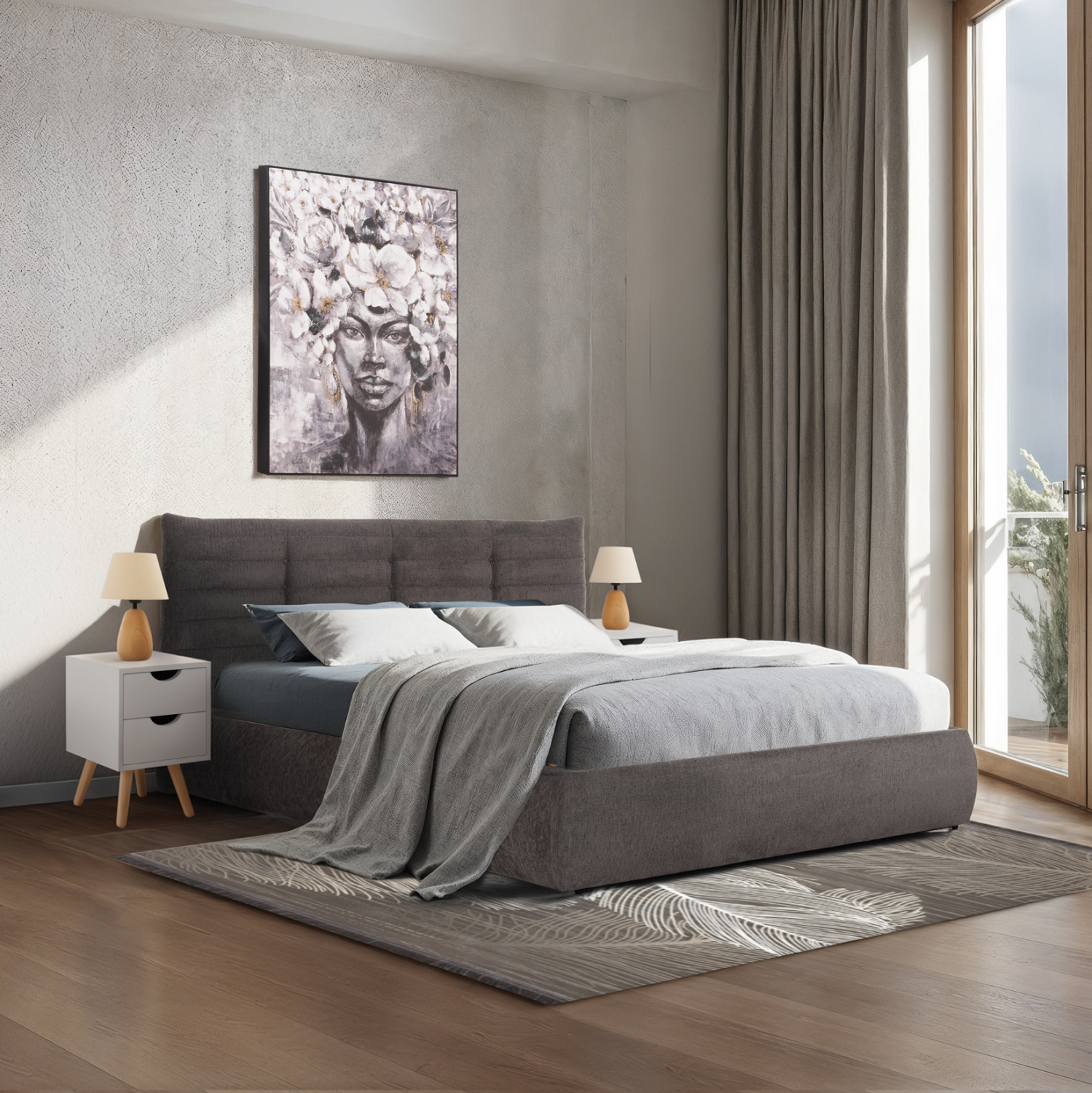 Το διπλό κρεβάτι FB9732.01 (για στρώμα 160x200) είναι καινούργια προσθήκη στην γκάμα μας. Διαθέτει επένδυση με ΓΚΡΙ ύφασμα, και μάλιστα στο κεφαλάρι σε καπιτονέ τεχνοτροπία.