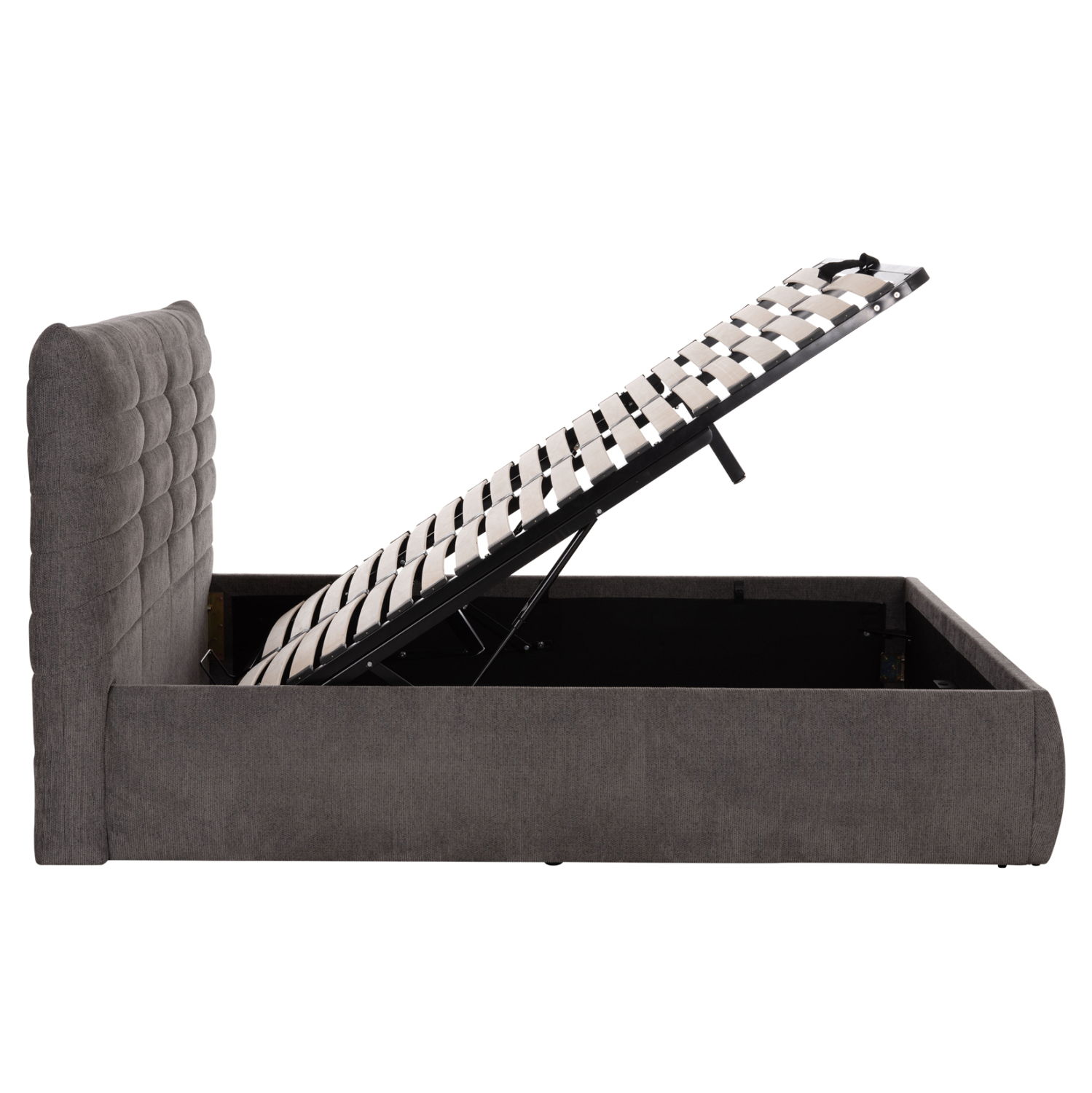 -Ο μηχανισμός του αποθηκευτικού χώρου είναι μεταλλικός και ανασηκώνεται με ανάρτηση (gas-lifts). Πάνω σε αυτό το μεταλλικό πλαίσιο τοποθετούνται και οι τάβλες του στρώματος.