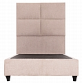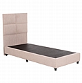 Το μονό κρεβάτι FB9652.32 συνδυάζει άνεση, κομψότητα και μοντέρνα αισθητική, αποτελώντας ιδανική επιλογή για υπνοδωμάτια κάθε στυλ. Διαθέτει ψηλό κεφαλάρι επενδυμένο με καπιτονέ τεχνοτροπία σε μεγάλα ορθογώνια, που προσδίδει πολυτέλεια και ζεστασιά στον χώρο. Το ζεστό TEDDY ύφασμα σε μπεζ απόχρωση προσφέρει μια απαλή υφή που ενισχύει την αίσθηση άνεσης. Η βάση στήριξης του στρώματος είναι από μοριοσανίδα επενδυμένη με μαύρο ύφασμα, ενώ το κρεβάτι διαθέτει χαμηλά μαύρα ποδαράκια, προσδίδοντας μοντέρνο και στιβαρό αποτέλεσμα.