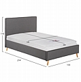 Το ημίδιπλο κρεβάτι FB921281.03 είναι επενδυμένο με ποιοτικό ύφασμα σε ΓΚΡΙ χρώμα με πιο σκούρο ρέλι στις ραφές. Το στρώμα (διατίθεται σε ROLL-PACKING*) που συνοδεύει το κρεβάτι τοποθετείται σε δύο σειρές ανατομικές τάβλες, είναι διπλής όψης και είναι ΑΦΡΟΥ χωρίς ελατήρια. Τα πόδια είναι ξύλινα σε φυσικό χρώμα.