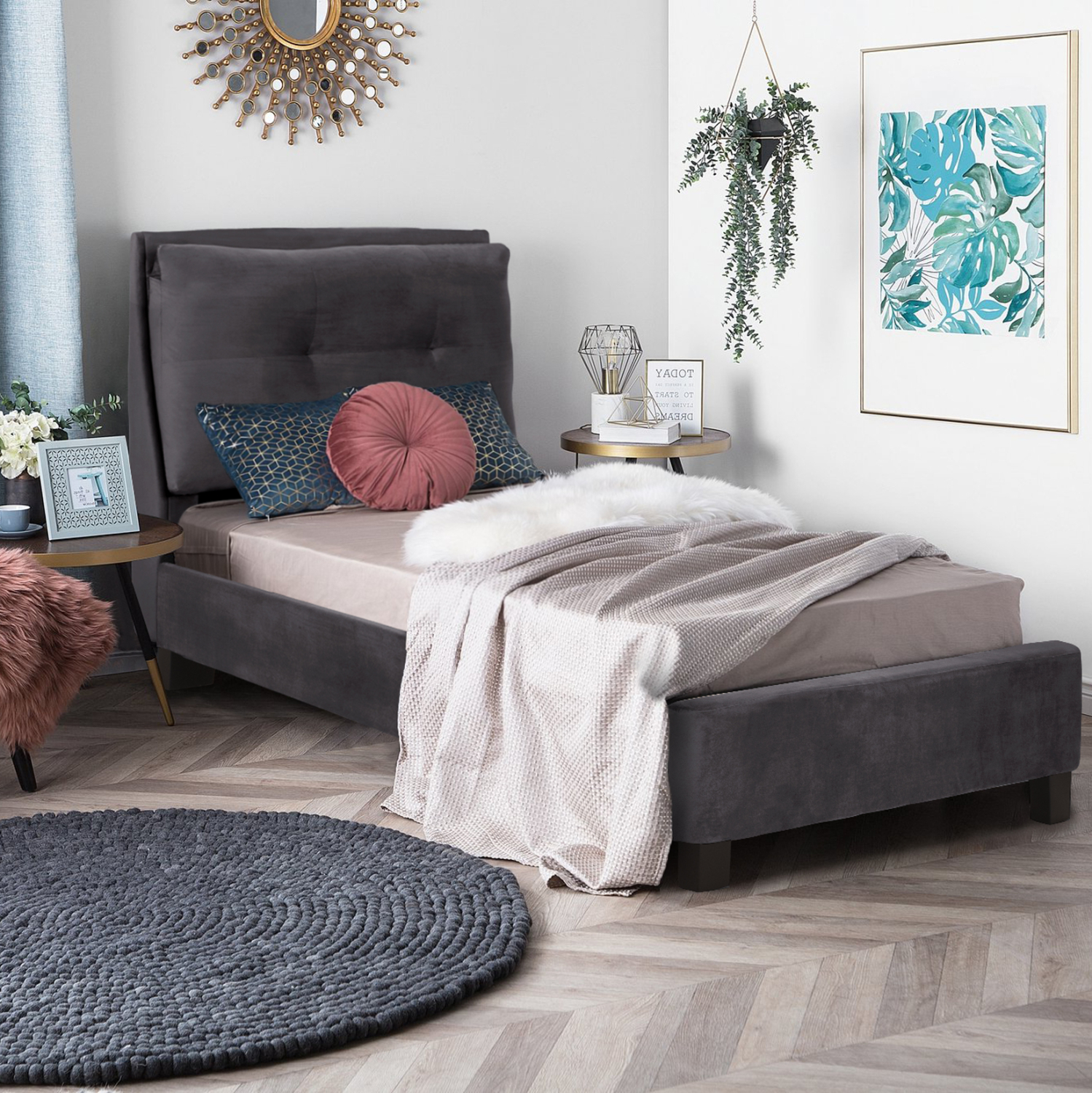 ΚΡΕΒΑΤΙ ΜΕ ΣΤΡΩΜΑ FB921282.01 ΓΚΡΙ ΒΕΛΟΥΔΟ--ΓΙΑ 90x200εκ
