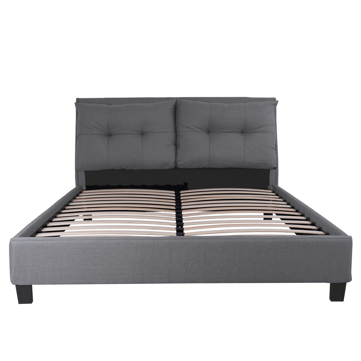 Το υπέρδιπλο κρεβάτι FB921284.03 είναι επενδυμένο με ποιοτικό ύφασμα σε ΓΚΡΙ χρώμα με δύο καπιτονέ μαξιλάρια στο κεφαλάρι. Το στρώμα που συνοδεύει το κρεβάτι τοποθετείται σε δύο σειρές ανατομικές τάβλες, είναι μονής όψης και είναι τεχνολογίας continuous spring με ενσωματωμένο ανώστρωμα pillow-top. Τα πόδια είναι σχετικά ψηλά από πολυπροπυλένιο σε μαύρο χρώμα.