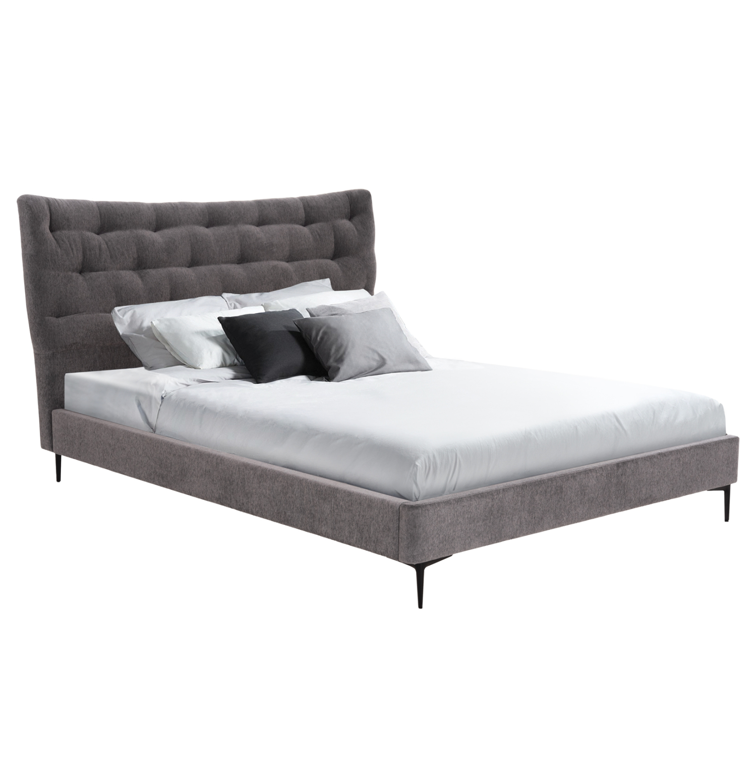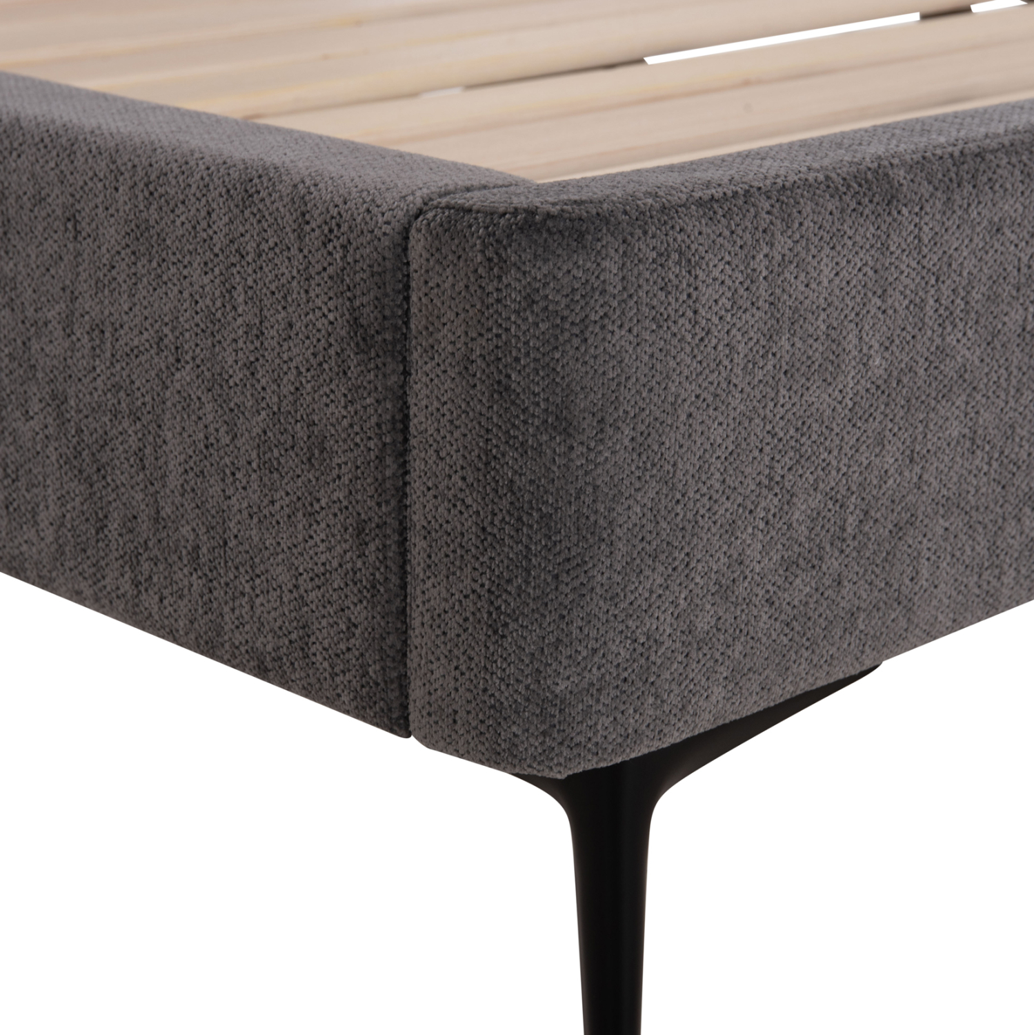 Το FB9737.01 είναι ένα νέο κρεβάτι σε διπλή διάσταση που θα αναβαθμίσει την εικόνα του υπνοδωματίου σας. Είναι επενδυμένο με εξαιρετικό ύφασμα σε ΓΚΡΙ χρώμα ενώ το κεφαλάρι είναι σχετικά ψηλό και με καπιτονέ τεχνοτροπία. Τα ψηλά και κομψά μαύρα μεταλλικά πόδια προσθέτουν μια μοντέρνα πινελιά, εξασφαλίζοντας παράλληλα στιβαρότητα και ανθεκτικότητα. Με πυκνές σειρές εργονομικών σανίδων που στηρίζονται σε διπλή μεταλλική μπάρα και πάνω τους τοποθετείται το στρώμα, κάθε βράδυ γίνεται μια χαλαρωτική εμπειρία.