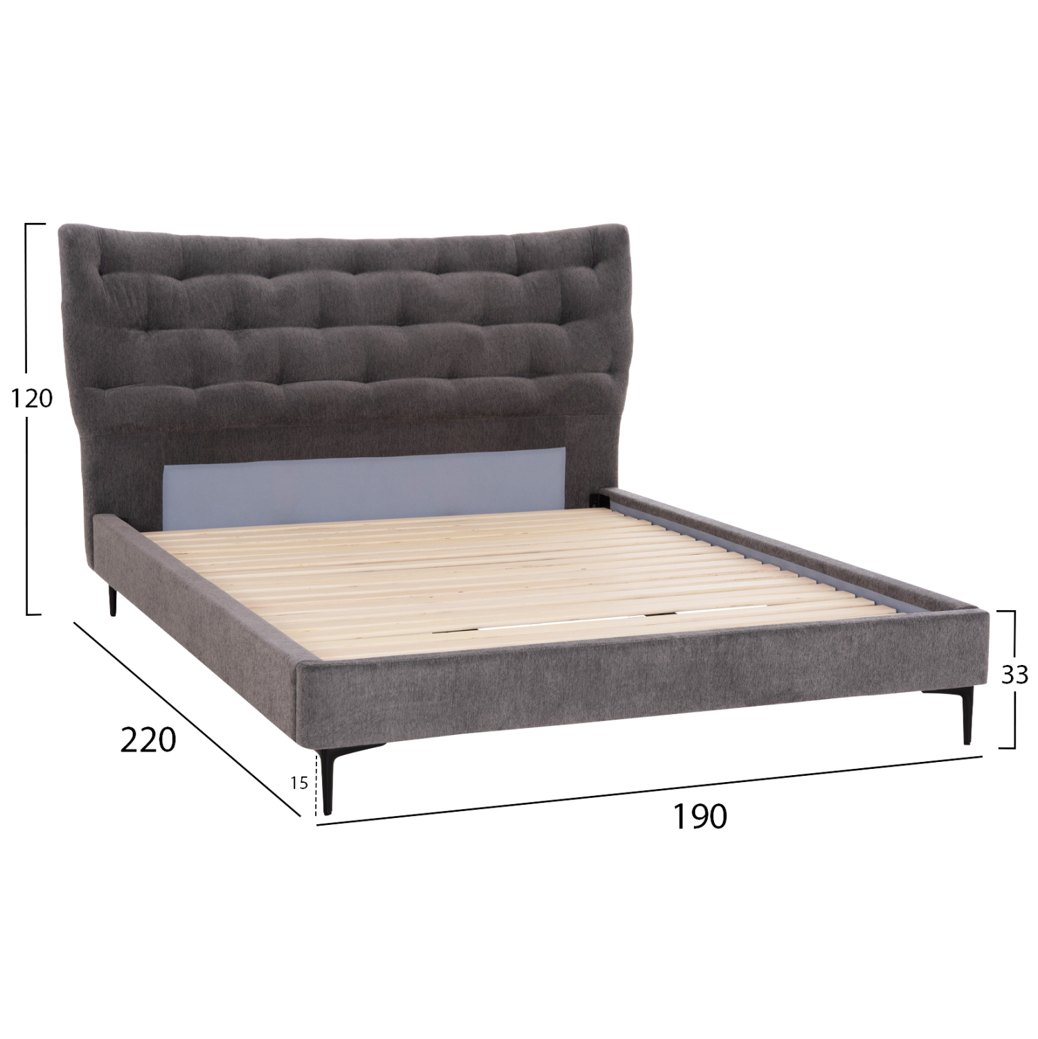 ΚΡΕΒΑΤΙ ΔΙΠΛΟ FB9737.01 ΥΦΑΣΜΑ ΣΕ ΓΚΡΙ--ΓΙΑ ΣΤΡΩΜΑ 160x200εκ.
